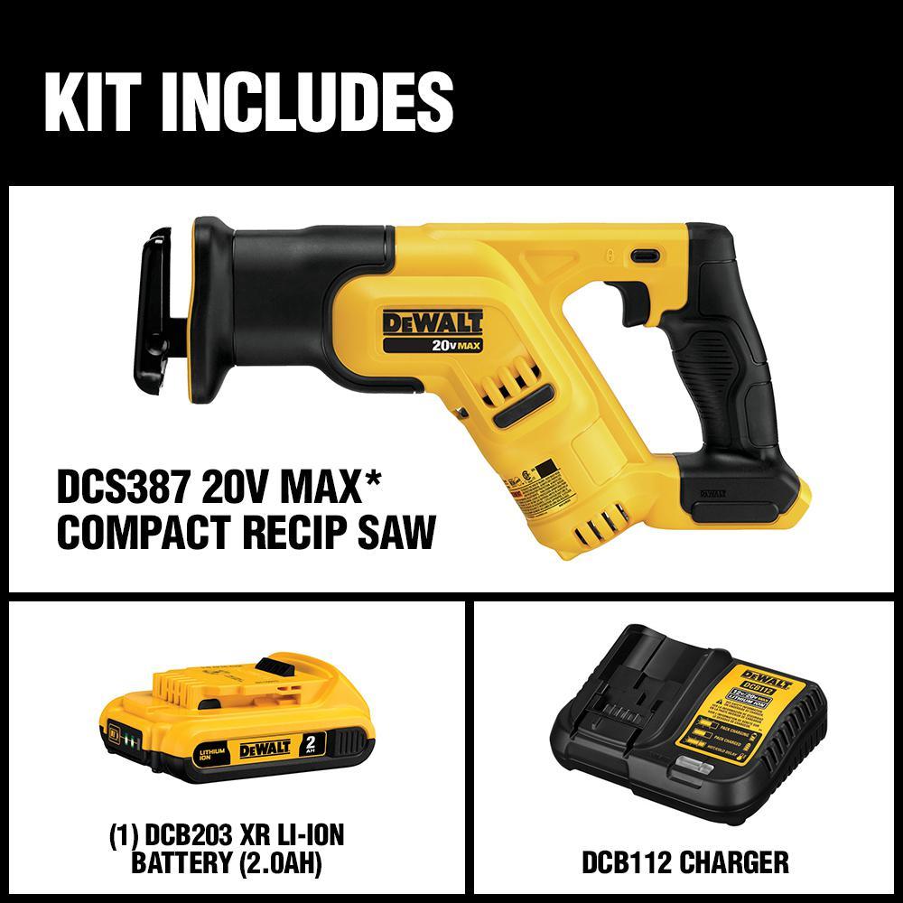The DEWALT dcs387d1 reciprocating saw is ideal most cutting applications. This saw features a compact and lightweight design. At 14.5 in. In total length fits between studs and allows users to make cuts in confined spaces.