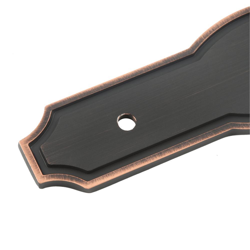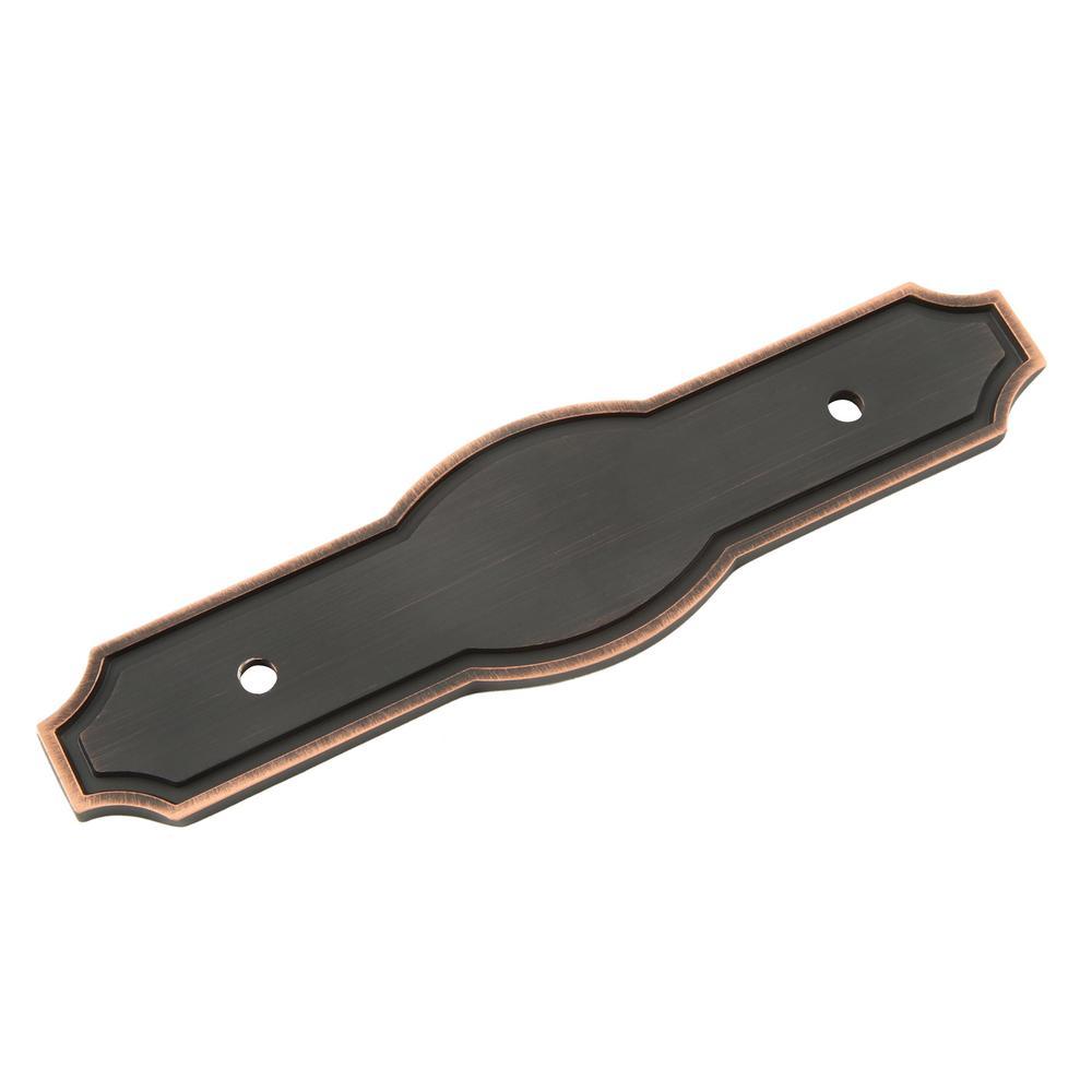 Inspired by Moroccan design elements, the Pryce back plate works with any 3 in. center to center pull. This design is great for adding a touch of style to your cabinetry, or for covering imperfections or old holes. The Bronze with Copper Highlights finish coordinates with most oil rubbed bronze hardware and looks great with light to medium cabinets.