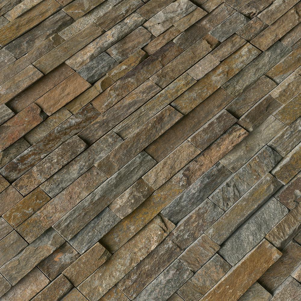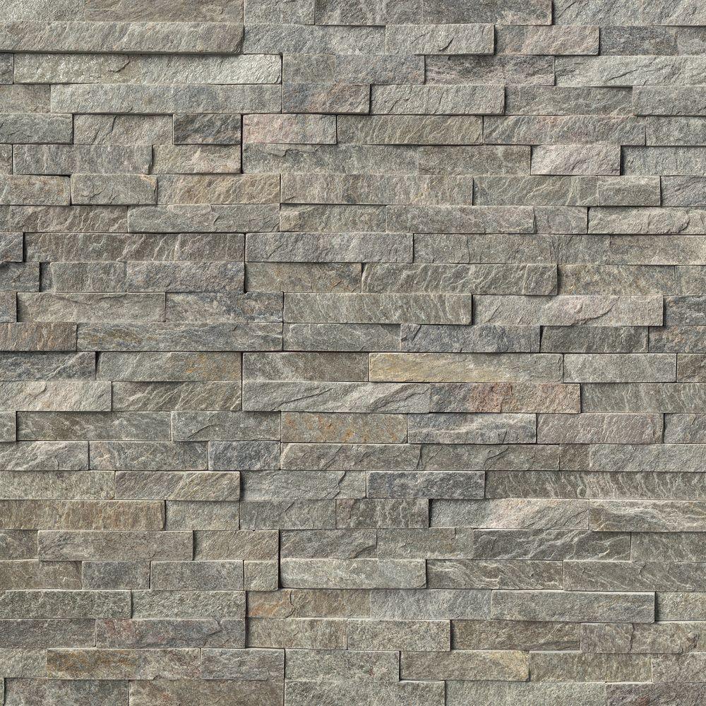 MSI Canyon Creek Ledger Panel 6 in. x 24 in. Wall Tile is a Natural Stone Quartzite with grey tones. Seemingly random strips of tile are glued together to form a panel that is easy to install. This frost resistant tile is suitable for indoor or outdoor walls in residential and commercial installations. Note: Inspect all tiles before installation. Natural stone products inherently lack uniformity and are subject to variation in color, shade, finish, etc. It is recommended to blend tiles from different boxes when installing. Natural stones may be characterized by dry seams and pits that are often filled. The filling can work its way out and it may be necessary to refill these voids as part of a normal maintenance procedure. All natural stone products should be sealed with a penetrating sealer.