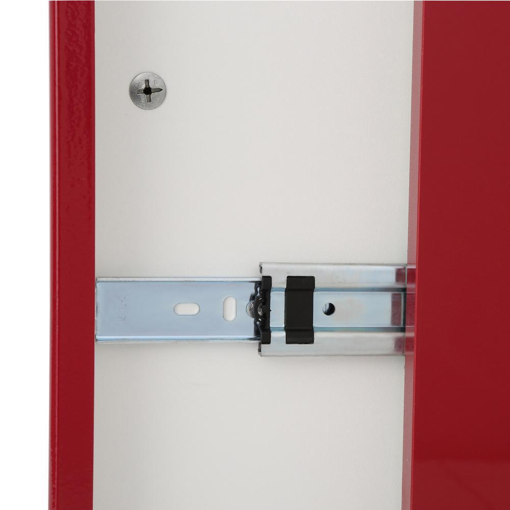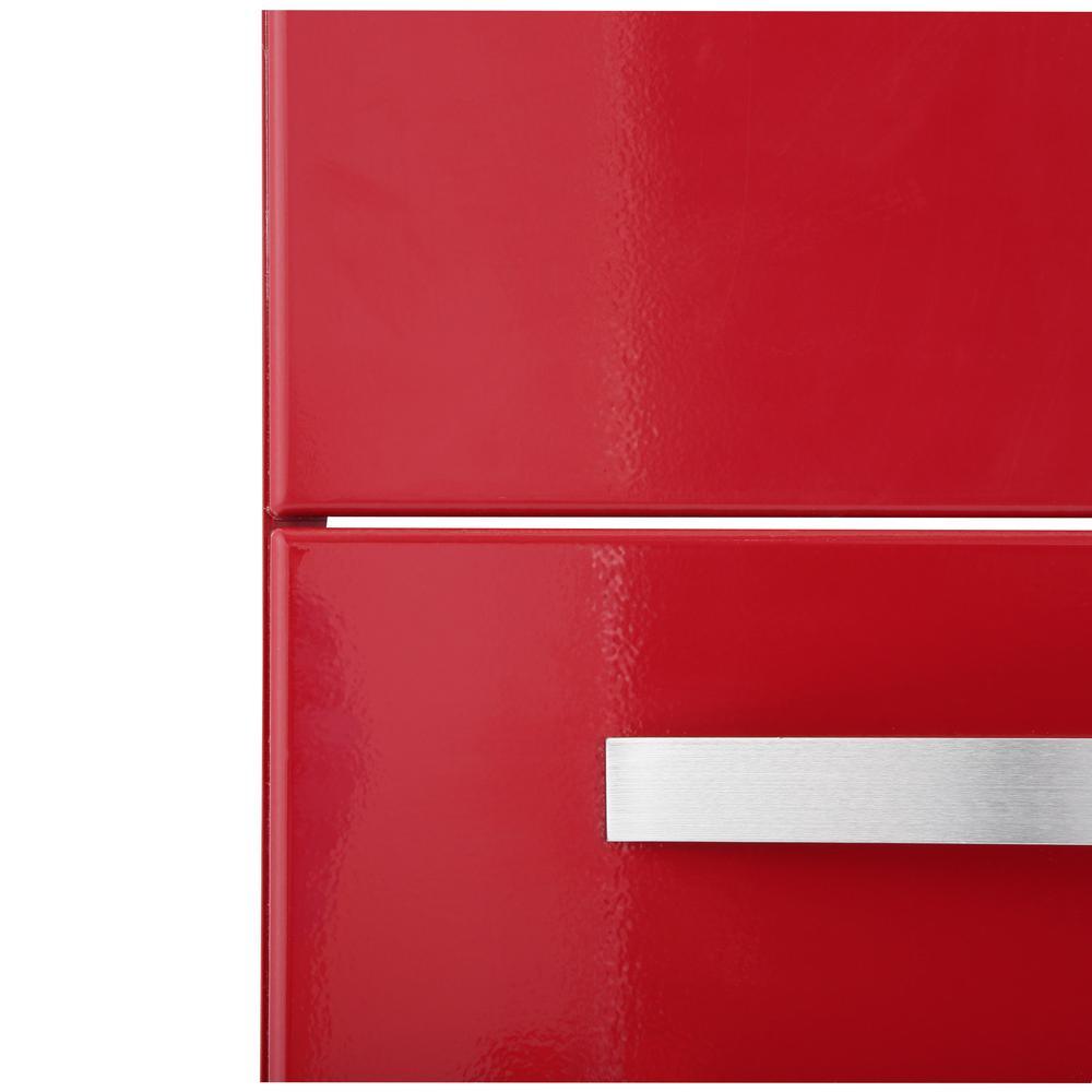Cabinet is made of an empire red high gloss PVC laminated front panel and of melamine for the side panels