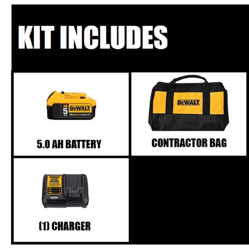 The DEWALT DCB205CK kit keeps your power tools running and productive. This kit includes a 5Ah 20-Volt MAX battery pack, charger and kit bag. The battery and charger are compatible with the entire line of DEWALT 20-Volt MAX Tools and accessories.