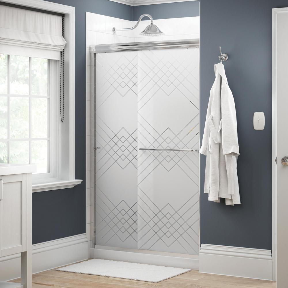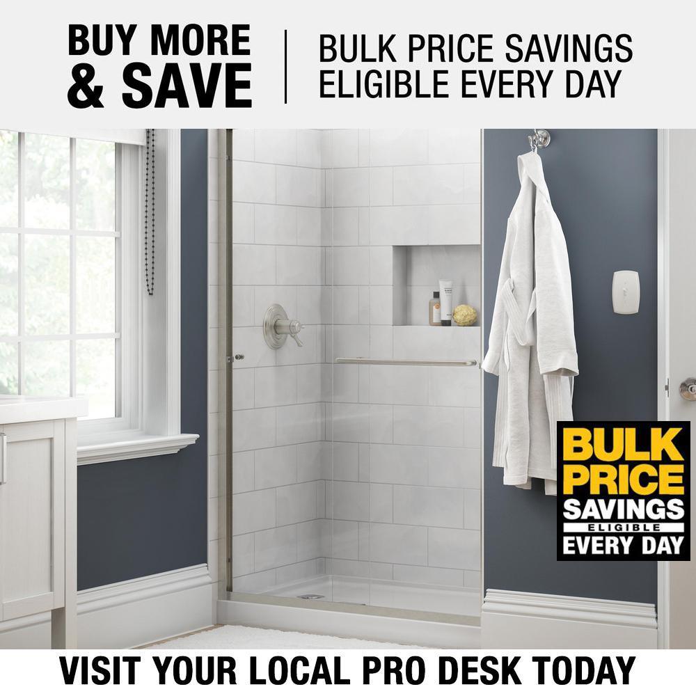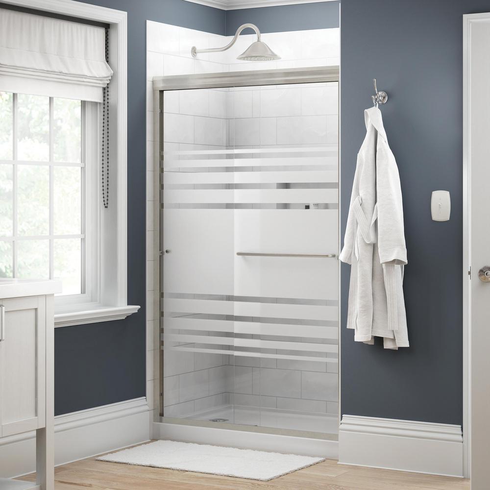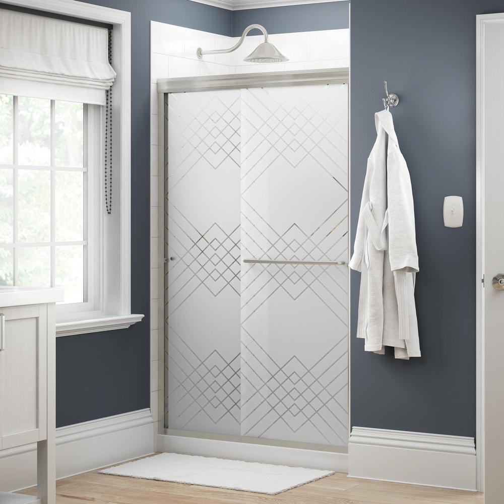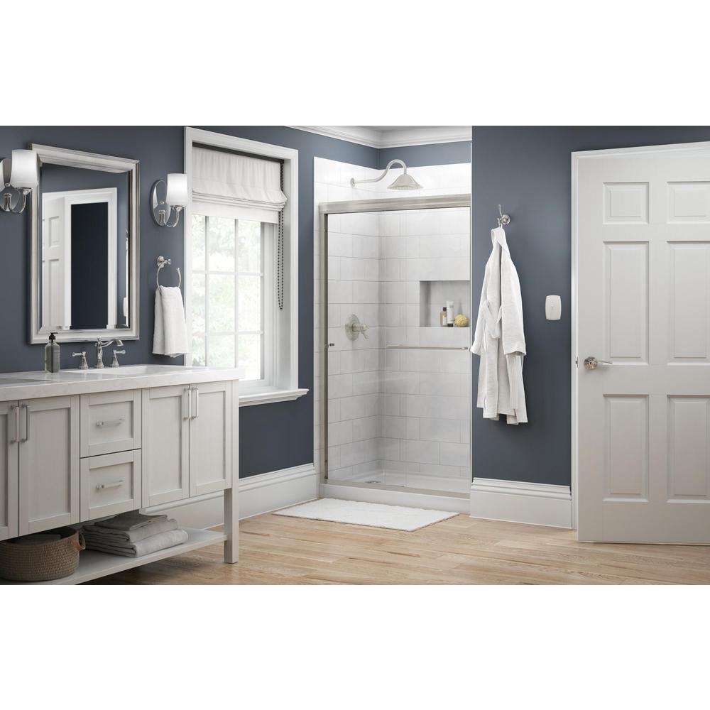 Whether you’re looking for a moderate DIY project or working on a bathroom remodel, upgrading your bathroom with a new sliding shower door is easy with the Delta 1-2-3 custom sliding shower door program. Delta’s custom glass shower door program offers 1000s of design combinations by choosing your glass shower panels, shower door track, and shower door handles to build a unique, personalized glass shower door. Simple and classic, the Traditional shower door track in nickel features a reversible top track with two unique profiles that offer uncompromised quality and value with a design that’s familiar and balanced. Show off your beautiful shower with standard 1/4 in. ANSI certified tempered glass shower panels, featuring Delta Spot Guard with a completely transparent look for a glass shower door that is both simple and elegant. The Simplicity sliding shower door handle with knobs features a convenient towel bar for extra bathroom storage and two interior knobs for extra showering space in a simple design silhouette that beautifully combines form and function.