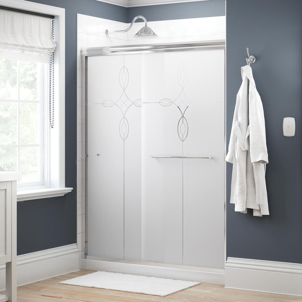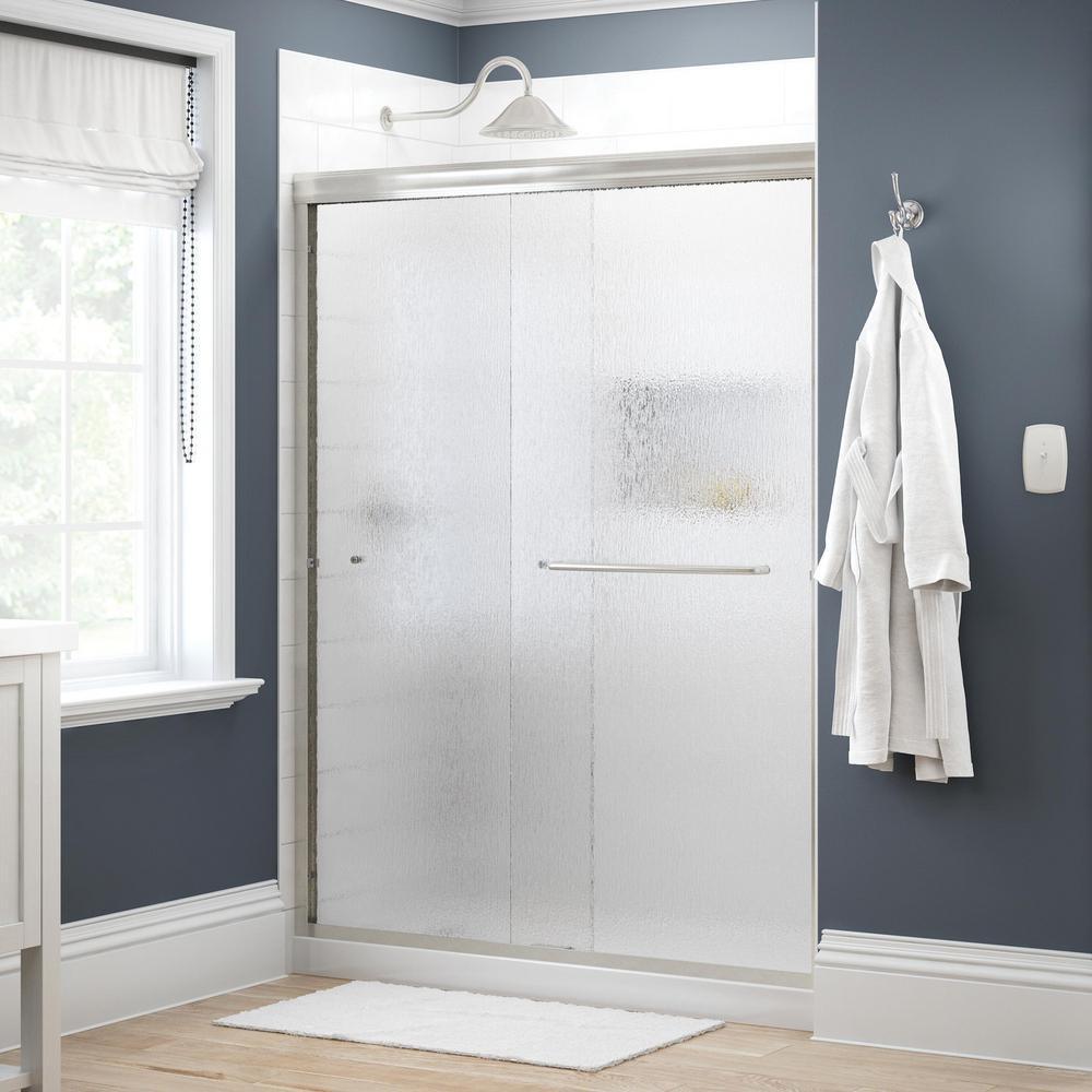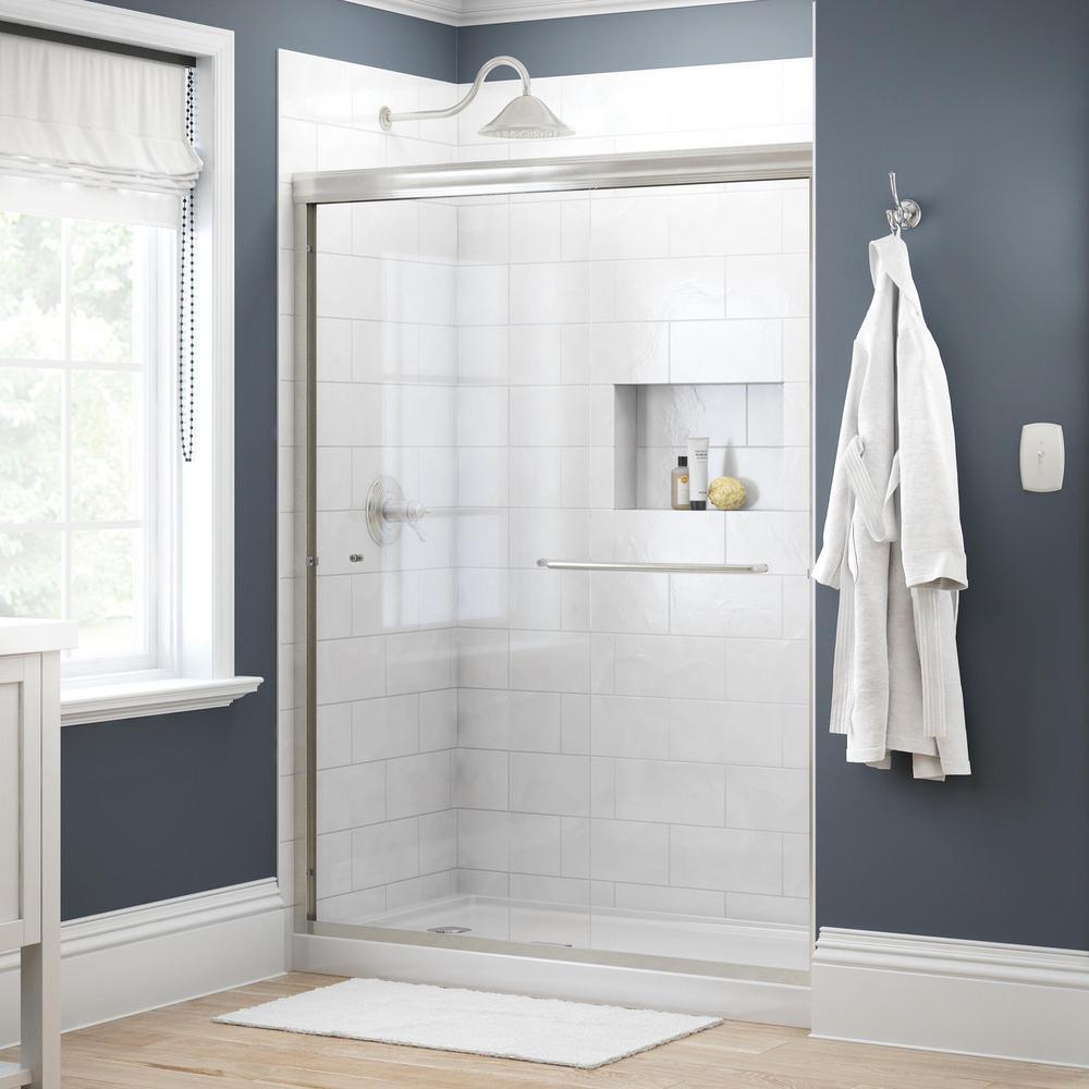 • Traditional sliding shower door designed to accommodate out-of-plumb (uneven, not vertically level) conditions totaling 3/8 in.
