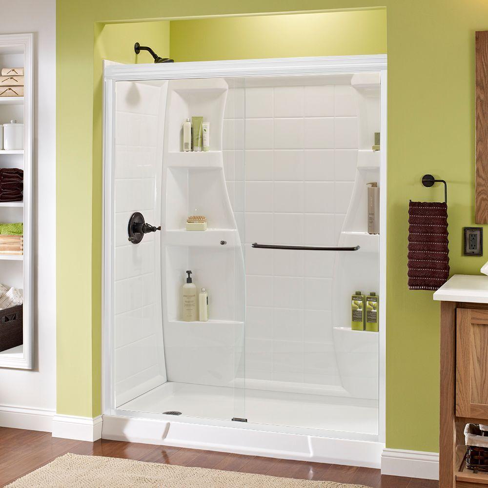 • Delta sliding glass shower panels feature Delta Spot Guard glass treatment for easy cleaning, to resist water spots and hardwater stains, and help reduce soap scum and limescale buildup when properly maintained