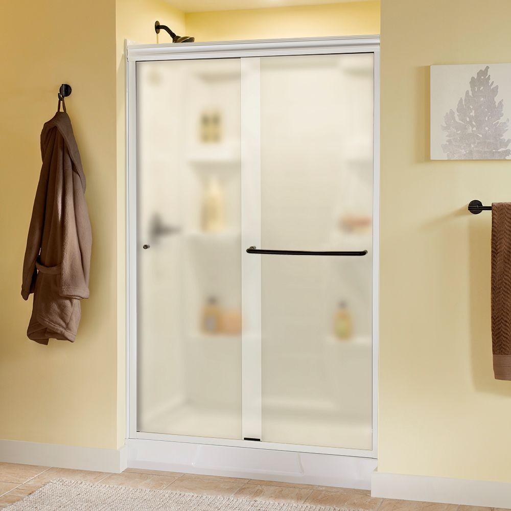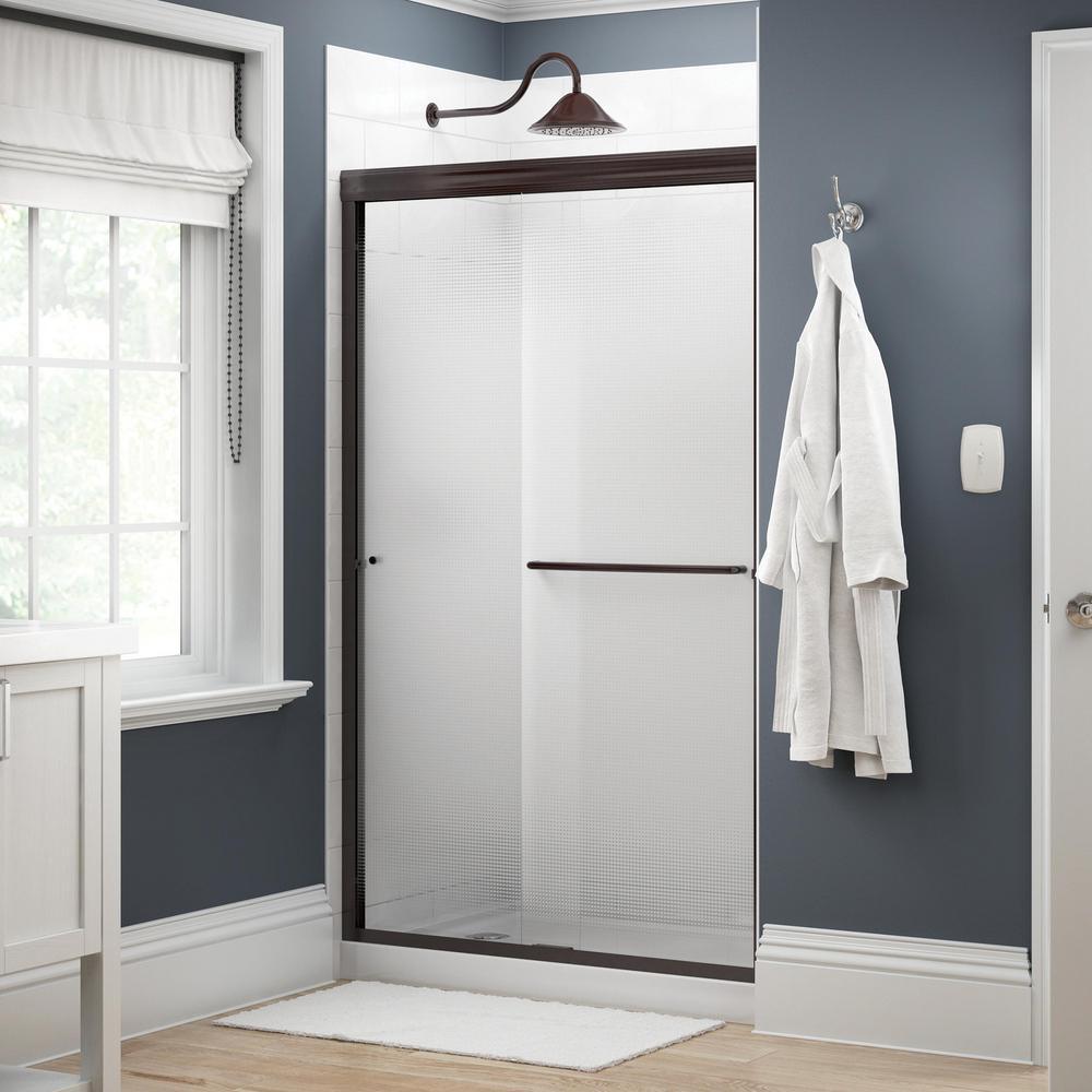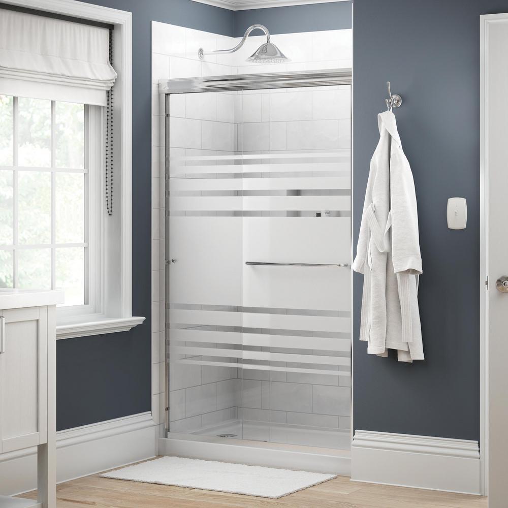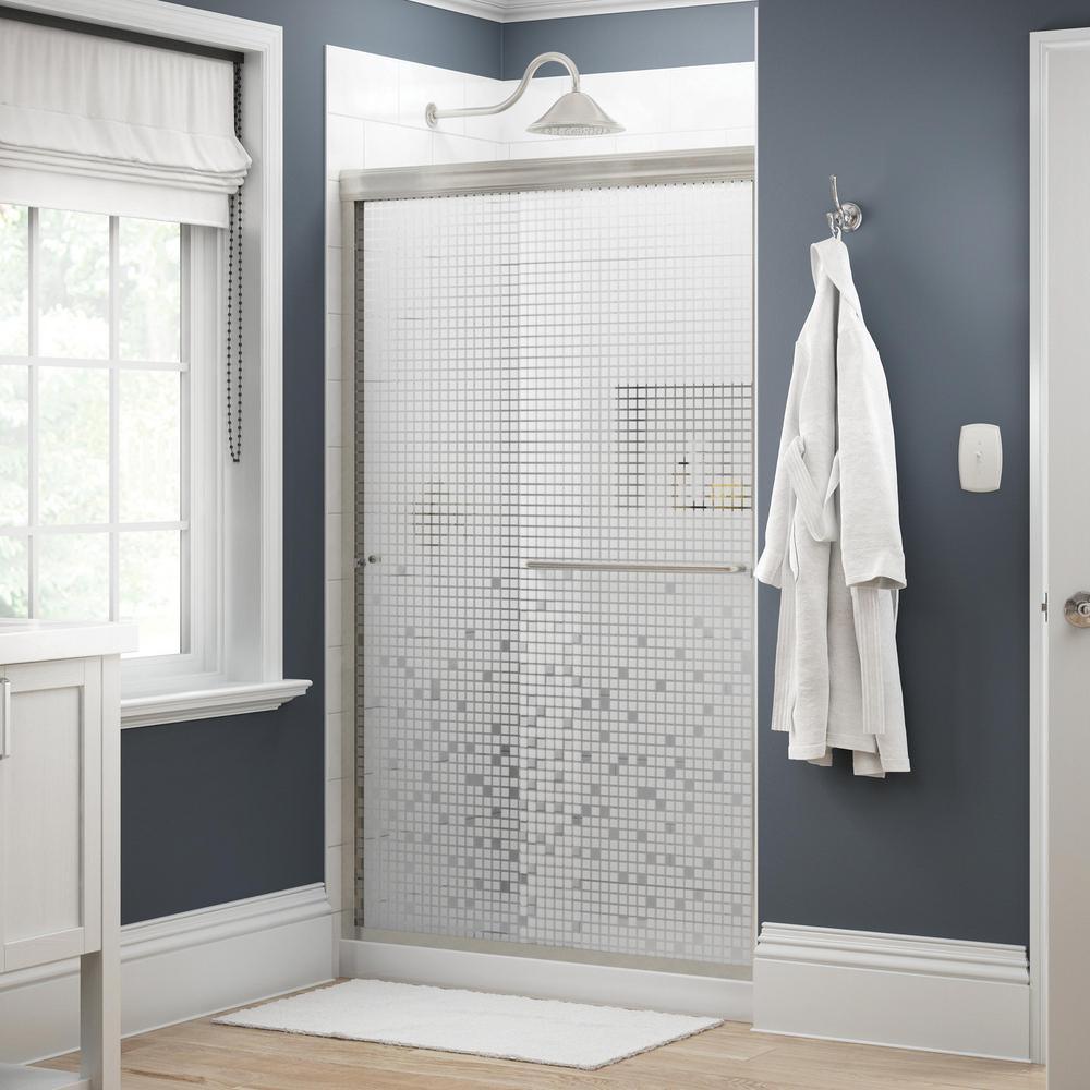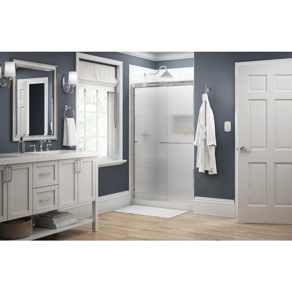 Whether you’re looking for a moderate DIY project or working on a bathroom remodel, upgrading your bathroom with a new sliding shower door is easy with the Delta 1-2-3 custom sliding shower door program. Delta’s custom glass shower door program offers 1000s of design combinations by choosing your glass shower panels, shower door track, and shower door handles to build a unique, personalized glass shower door. Simple and classic, the Traditional shower door track in chrome features a reversible top track with two unique profiles that offer uncompromised quality and value with a design that’s familiar and balanced. Make a statement with standard 1/4 in. ANSI certified tempered glass shower panels, featuring a textured surface that resembles water running down the panels for a spa-like feel and the most privacy. The Simplicity sliding shower door handle with knobs features a convenient towel bar for extra bathroom storage and two interior knobs for extra showering space in a simple design silhouette that beautifully combines form and function.