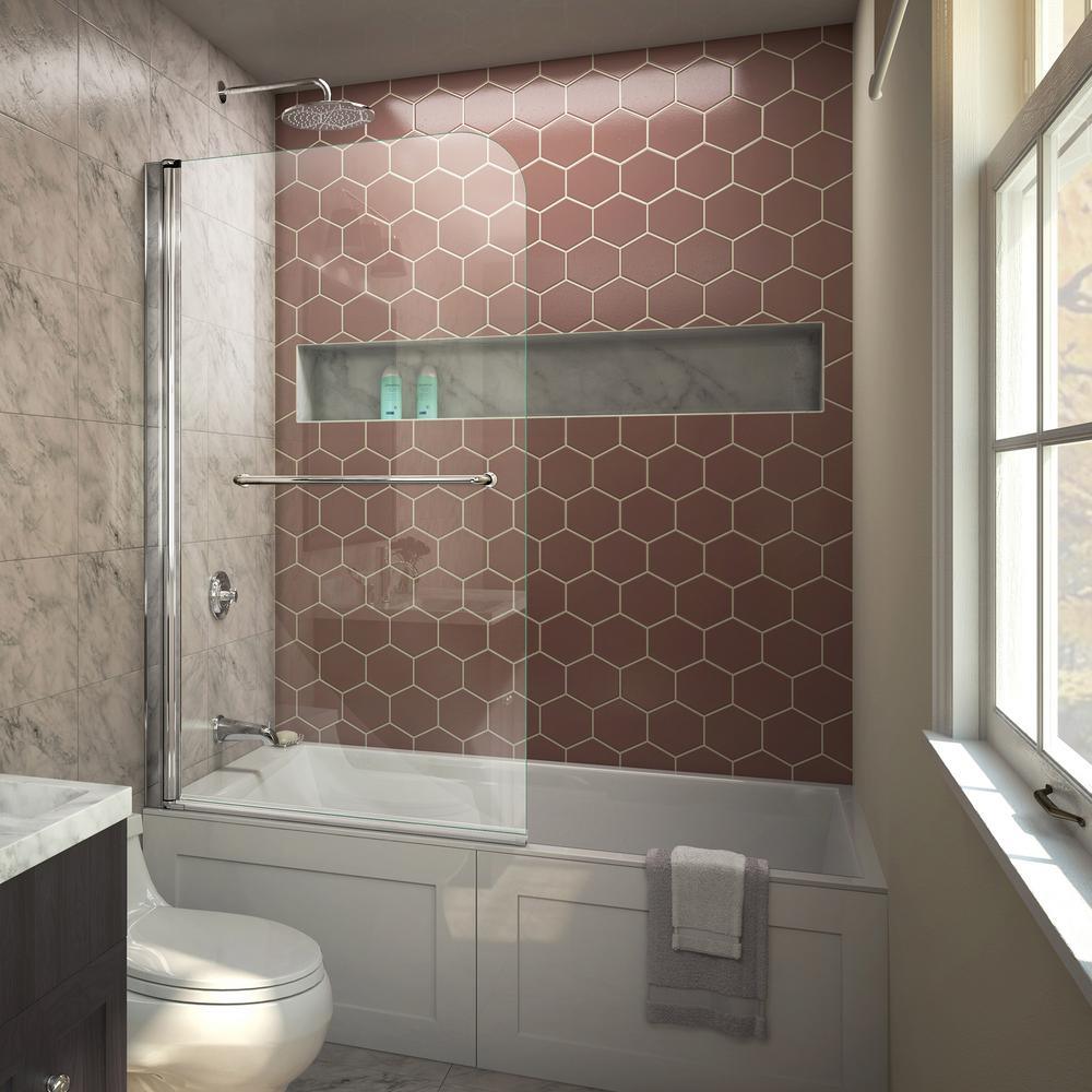 DreamLine Aqua Swing 34 in. W x 58 in. H Semi-Frameless Hinged Tub Door in Chrome