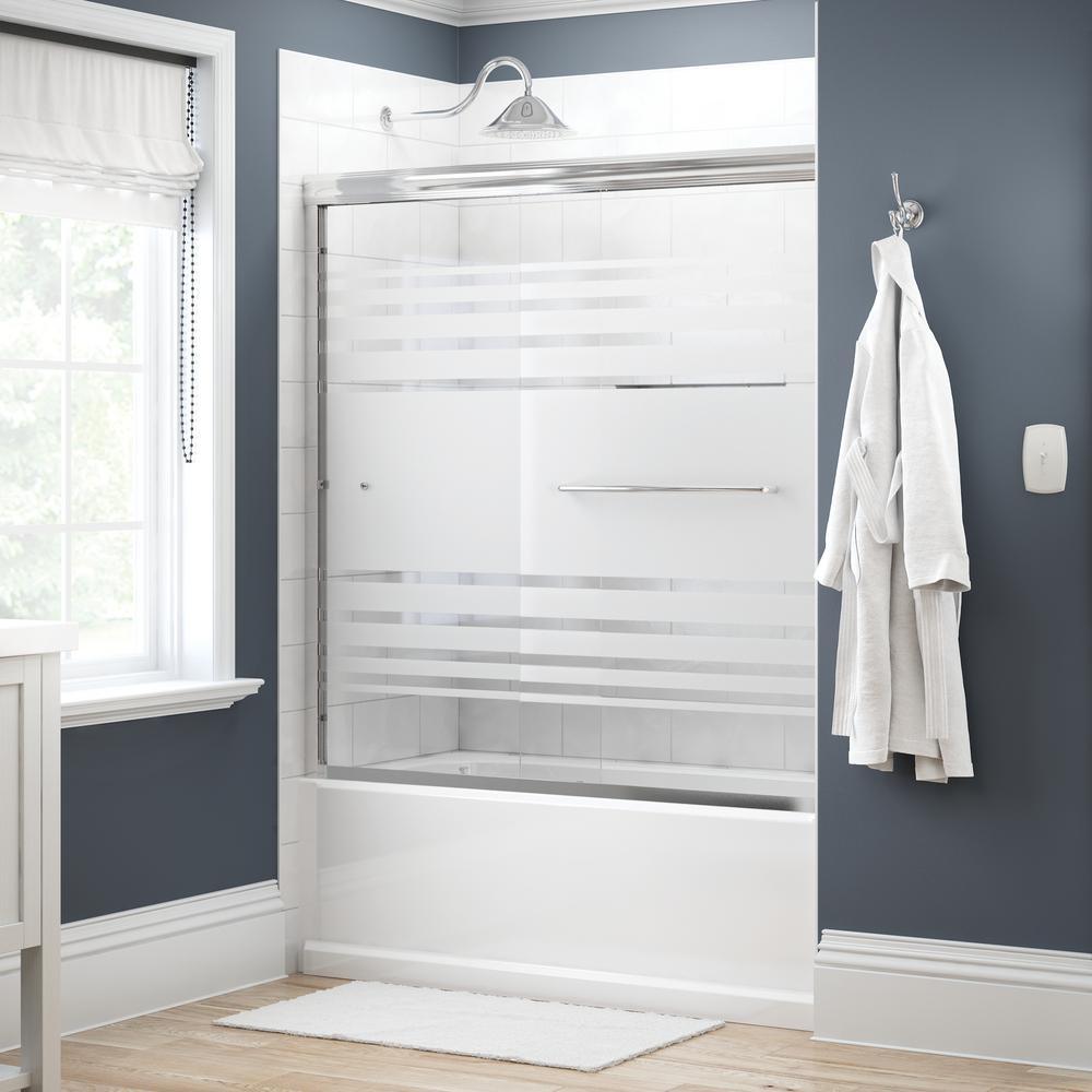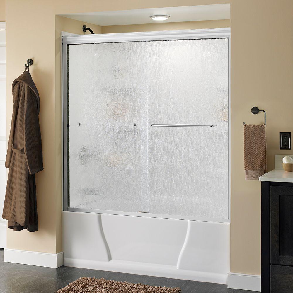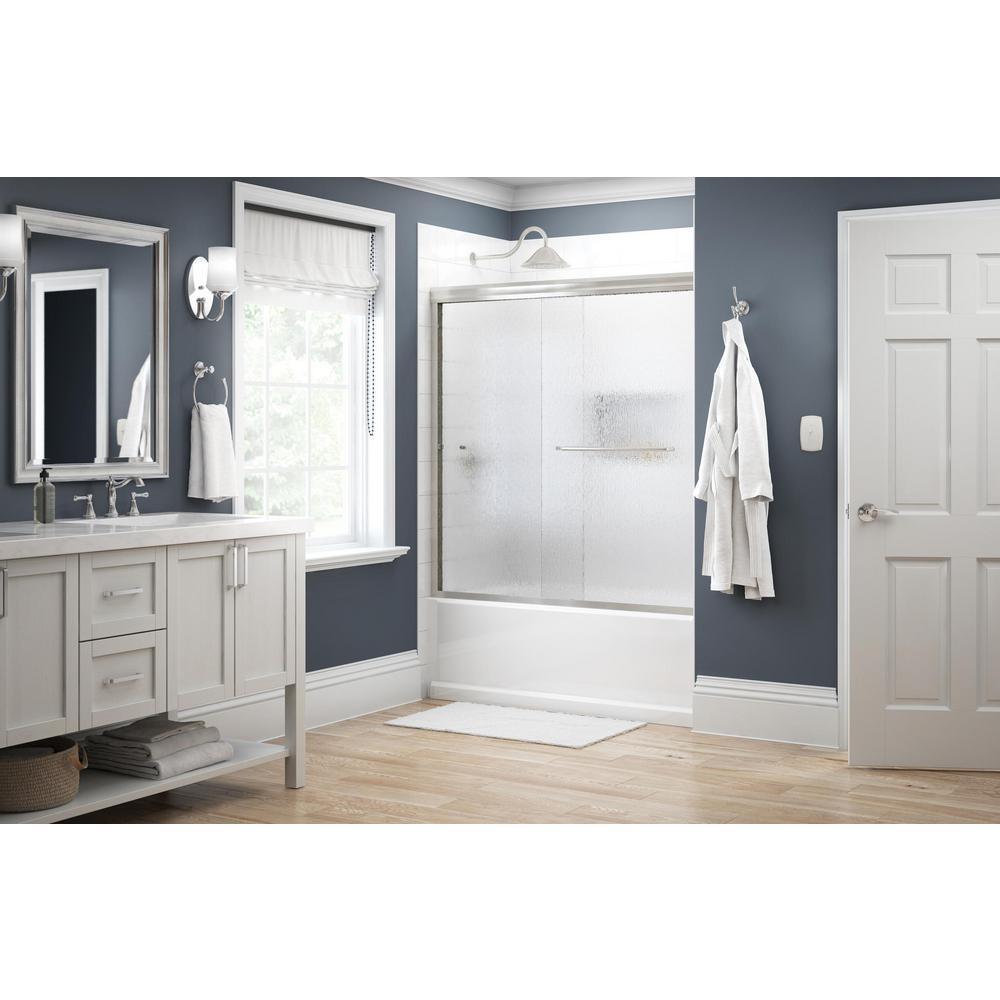 Whether you’re looking for a moderate DIY project or working on a bathroom remodel, upgrading your bathroom with a new sliding shower door is easy with the Delta 1-2-3 custom sliding shower door program. Delta’s custom glass shower door program offers 1000s of design combinations by choosing your glass shower panels, shower door track, and shower door handles to build a unique, personalized glass shower door. Simple and classic, the Traditional bathtub door track in nickel features a reversible top track with two unique profiles that offer uncompromised quality and value with a design that’s familiar and balanced. Make a statement with standard 1/4 in. ANSI certified tempered glass shower panels, featuring a textured surface that resembles water running down the panels for a spa-like feel and the most privacy. The Simplicity sliding shower door handle with knobs features a convenient towel bar for extra bathroom storage and two interior knobs for extra showering space in a simple design silhouette that beautifully combines form and function.
