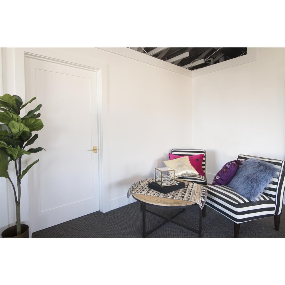 This 36 in. x 96 in. Shaker 1-panel interior slab from Krosswood Doors features a primed MDF surface ready for paint and a solid core for enhanced sound and temperature insulation. Clean lines suit modern to classic spaces and the slab arrives unbored for flexible hardware placement.