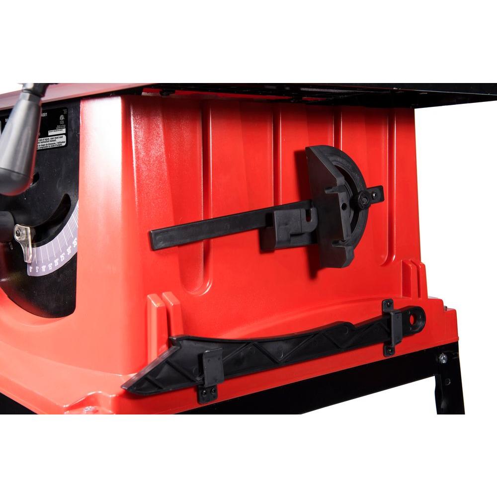 Includes: 10 in. 24 tooth TCT saw blade, rip fence, miter gauge, push stick, blade wrench, sturdy steel stand and a transparent blade guard with riving knife and anti-kickback pawls