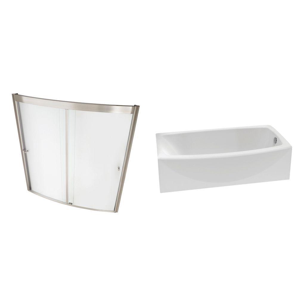 Ovation 60 in. Standard Fit Bathtub Kit with Right-Hand Drain and Sliding Tub/Shower Door in Satin Nickel