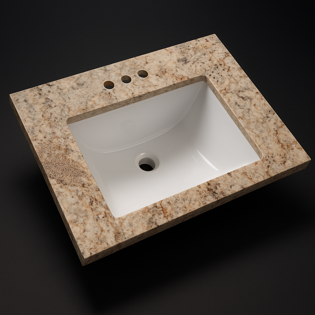 Transform your bathroom into a sanctuary of sophistication with this exquisite vanity top. The Rustic Gold finish, with its golden orange and dark gray veining, evokes the timeless beauty of natural stone. Pair it with a sleek faucet to create a harmonious blend of functionality and style. This piece is not just a vanity top; it's a statement of luxurious living.