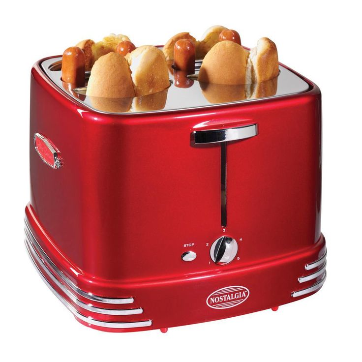 Retro Series 4-Slice Red Hot Dog and Bun Toaster with Crumb Tray and Mini Tongs