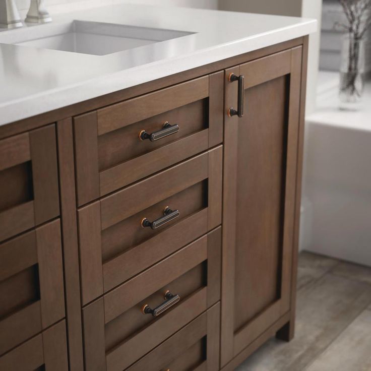 The Porter pull from Delta is a perfect fit for any home with its blend of casual and traditional design elements. Crafted from die-cast zinc for long lasting quality and durability. Installation hardware is included for your convenience. Coordinates perfectly with a suite of bathroom hardware accessories and a lavatory faucet.
