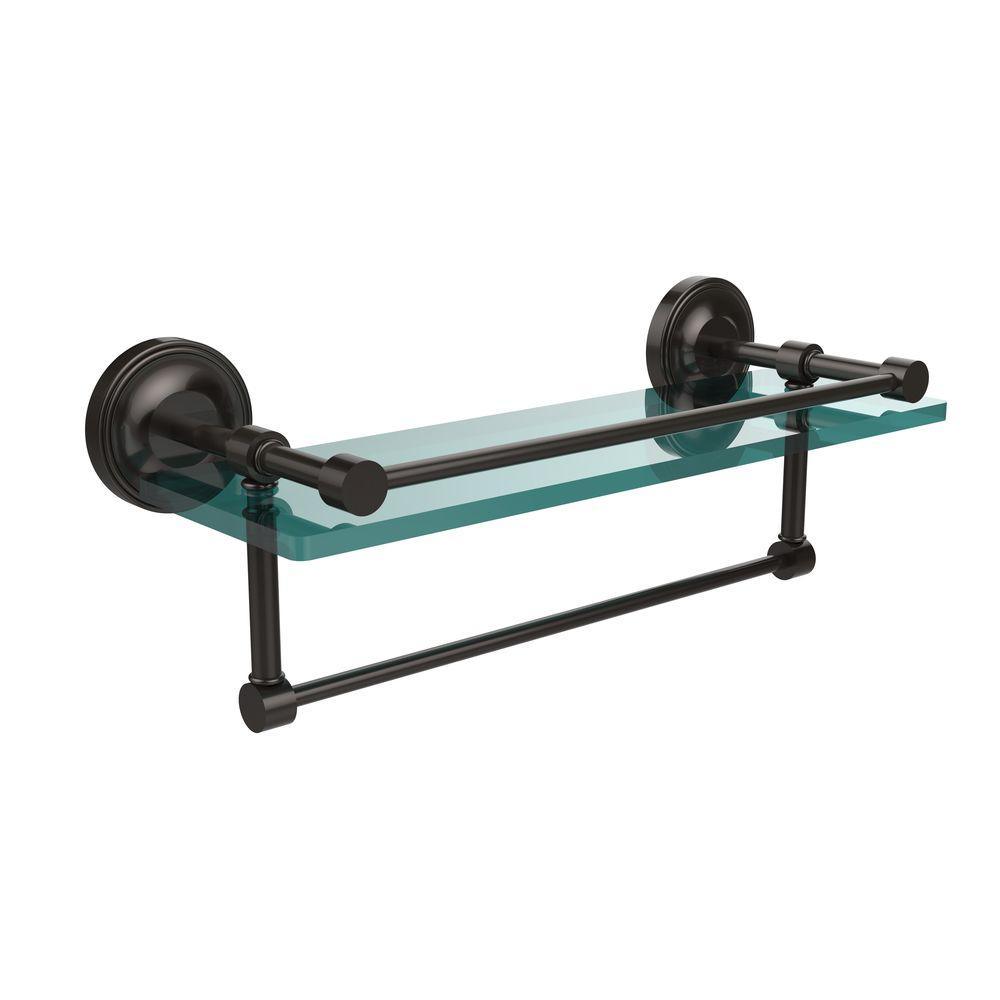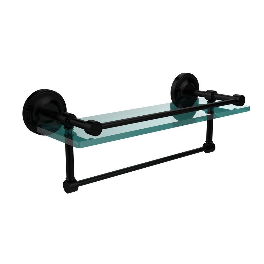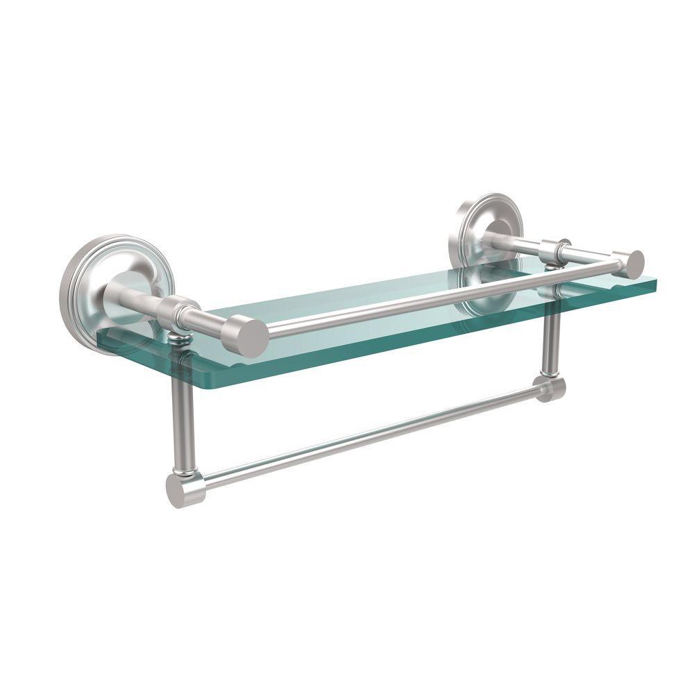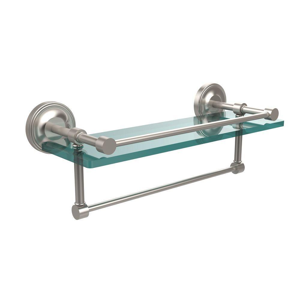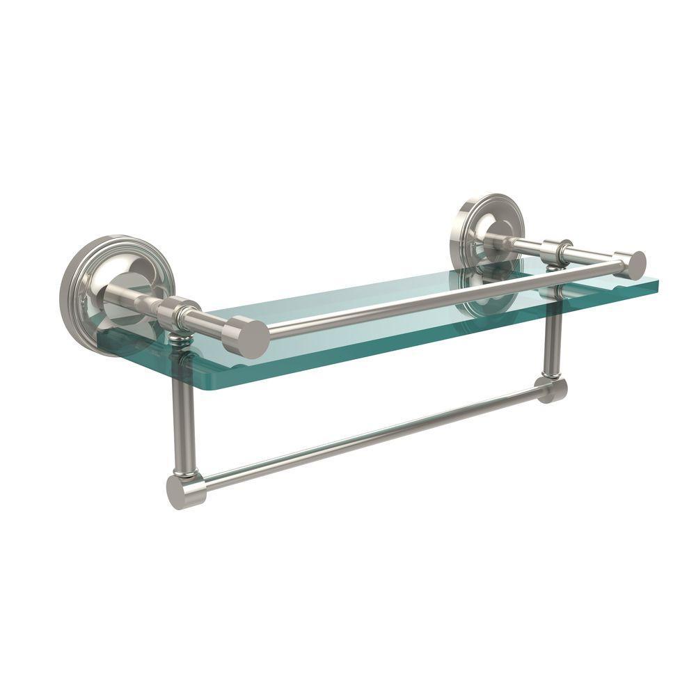 16 in. L x 5 in. H x 5 in. W Gallery Clear Glass Bathroom Shelf with Towel Bar in Polished Nickel