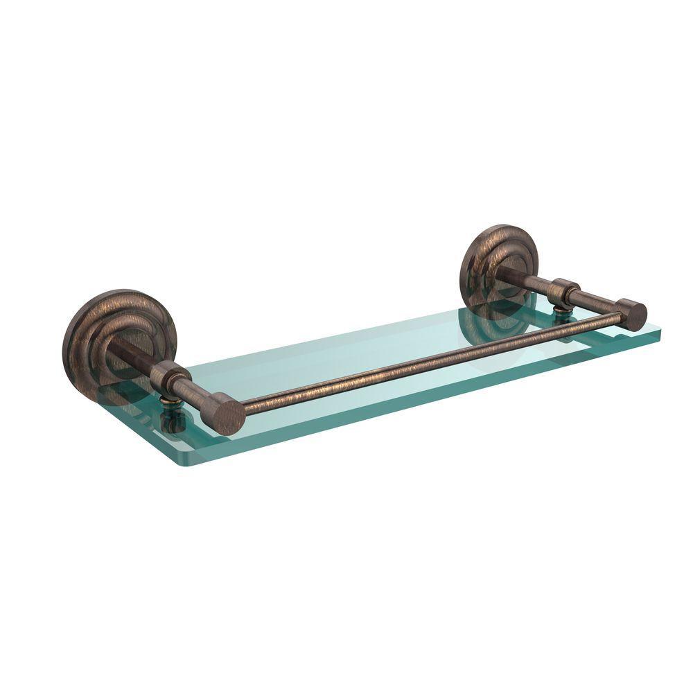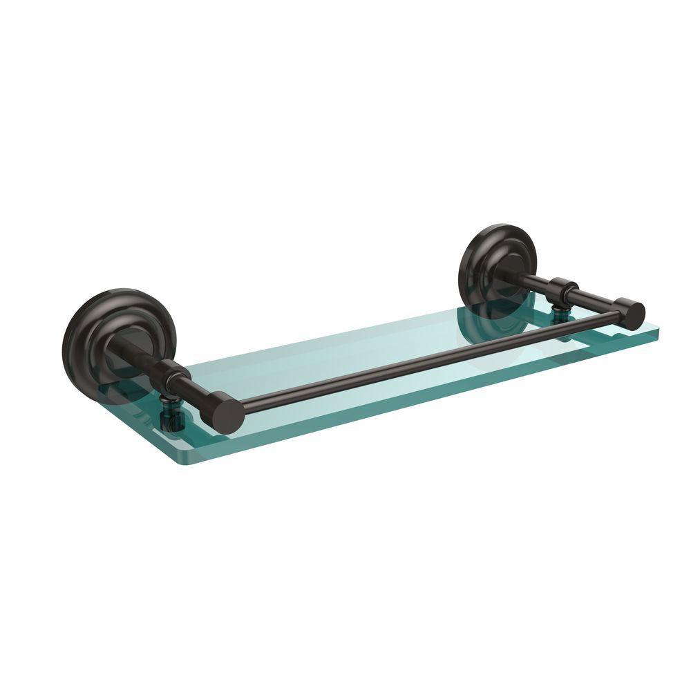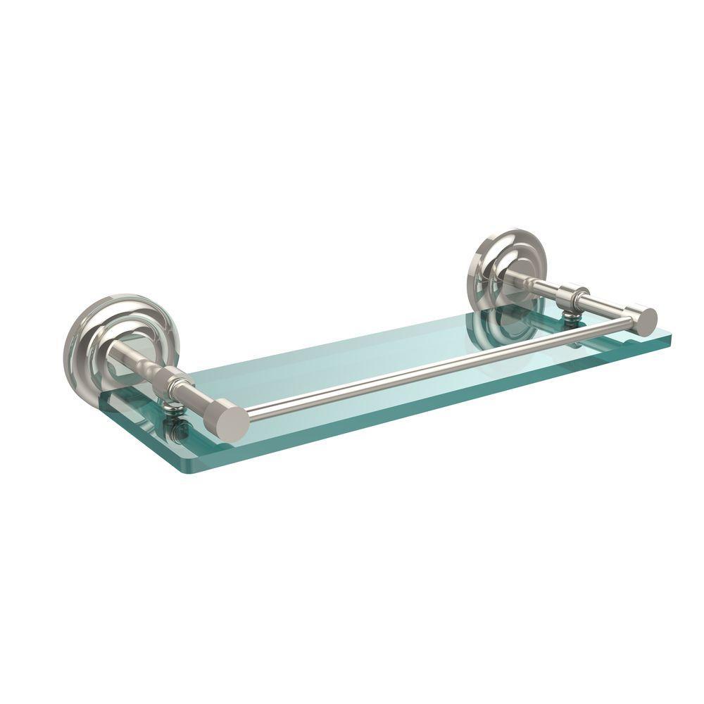 Que New 16 in. L x 3 in. H x 5 in. W Clear Glass Bathroom Shelf with Gallery Rail in Polished Chrome