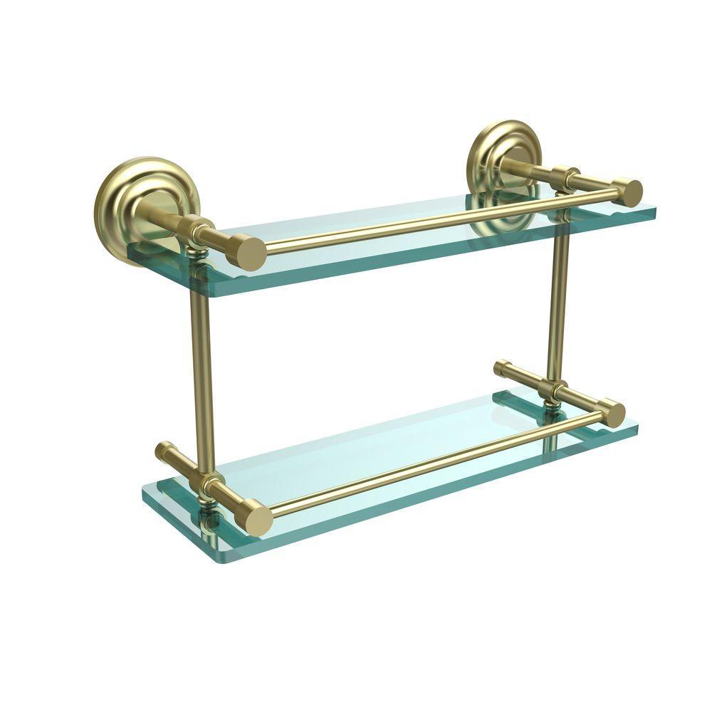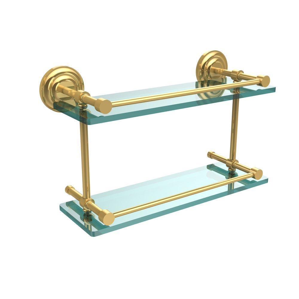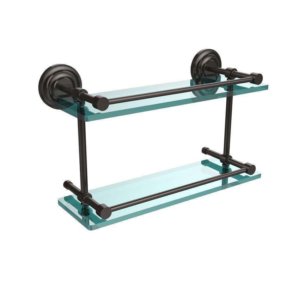 Que New 16 in. L x 8 in. H x 5 in. W 2-Tier Clear Glass Bathroom Shelf with Gallery Rail in Brushed Bronze