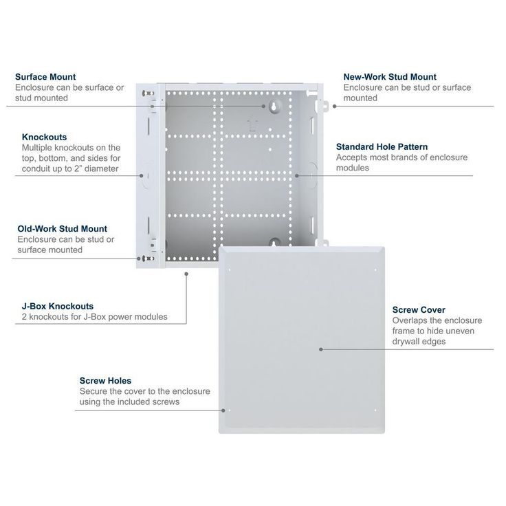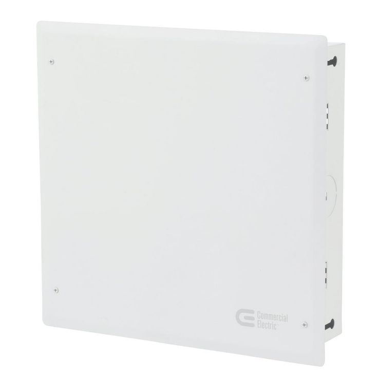 The 14 in. Telecommunication Center by Commercial Electric simplifies the process of running and managing cables, while also being cost-effective. Designed for use in home or small office environments, this enclosure acts as a centralized distribution point for various forms of structured wiring such as voice, audio/video, networking, and more. It features multiple knockouts on the top, bottom, and sides for easy cable entry and routing, and can accommodate conduit up to 2 in. in diameter. The enclosure also includes a knockout for a single gang J-box power module, AC power module, or universal DC power supply. With mounting slots, integrated cable tie anchors, and a glossy white finish, this product offers a clean and organized solution for cable management. It is ETL listed and meets FCC part 68 standards, as well as complying with TIA-568-C and TIA-570-B requirements. Please note that this enclosure should not be used for firewall applications.