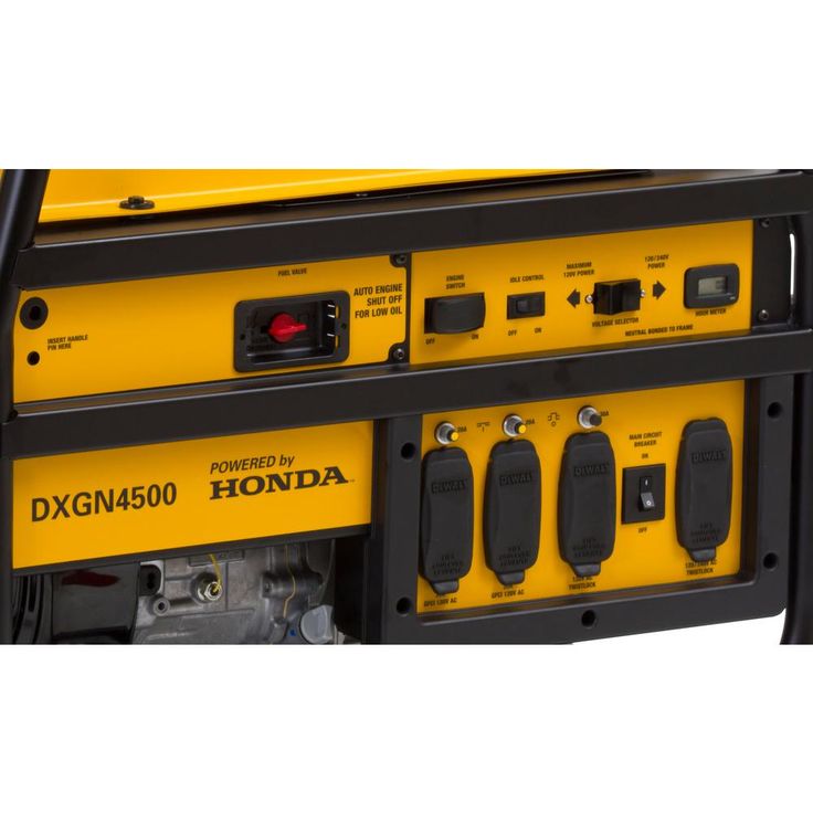 Regular price $1,859.00The DEWALT DXGN4500 is designed with the professional contractor or rental operator in mind. This unit is powered by a 270 cc Honda GX270 manual start OHV engine with auto shut off for low oil. The premium alternator provides low harmonic distortion. The large 7 Gal. tank with fuel gauge runs up to 15-hours at 50% load. Features include a hydraulic/magnetic circuit breaker that provides overload protection, a digital hour meter for monitoring run time and tracking maintenance and an idle control to reduce noise and save fuel. The steel frame is job site tested and includes a lifting hook. An optional wheel kit in available.
