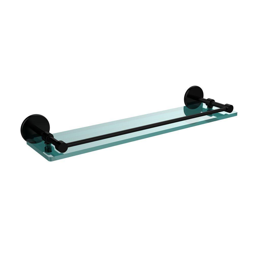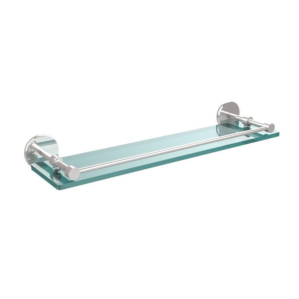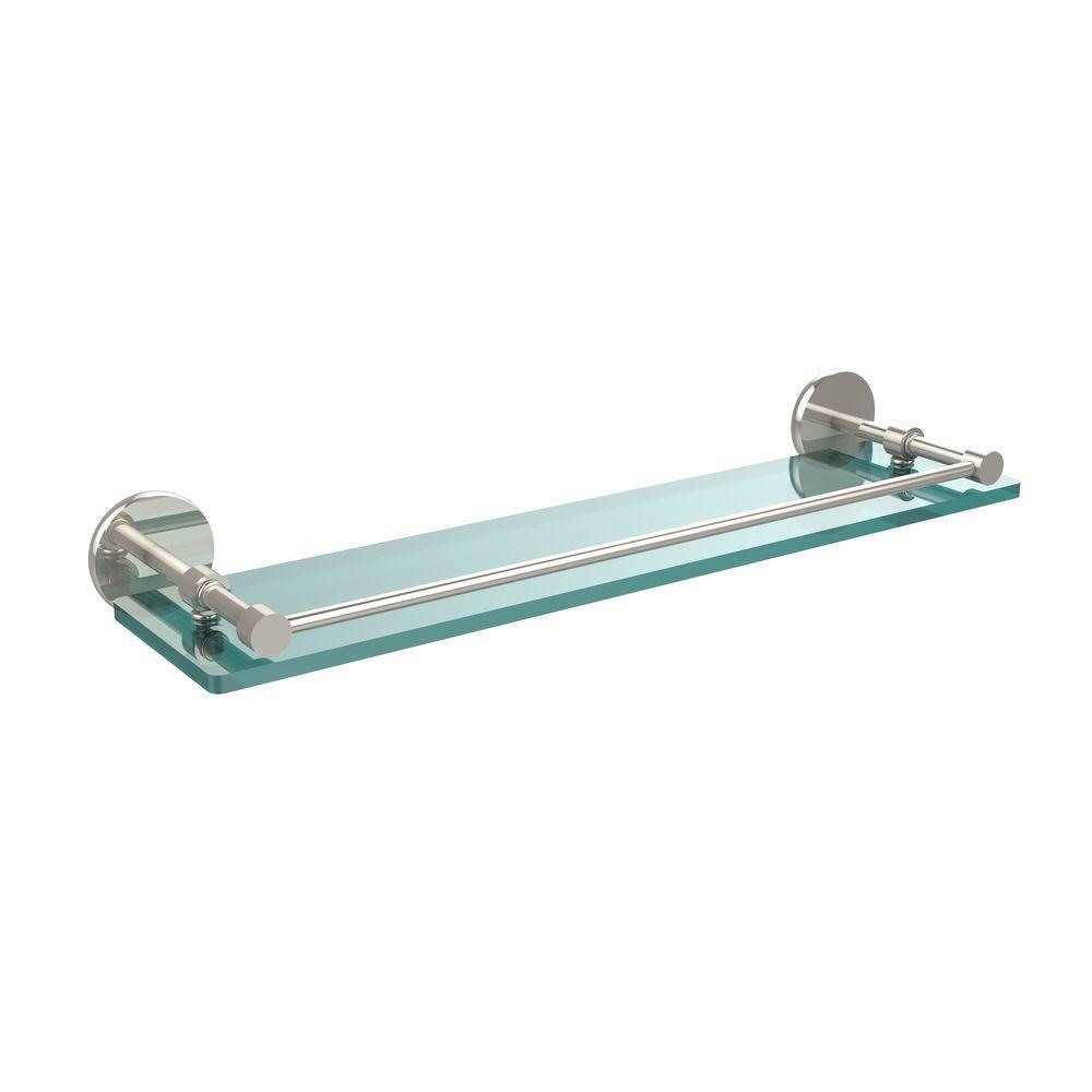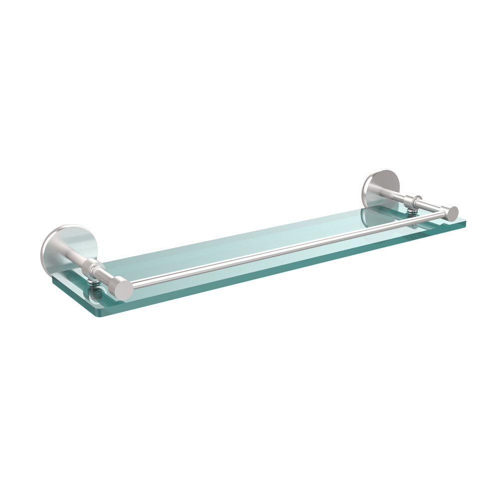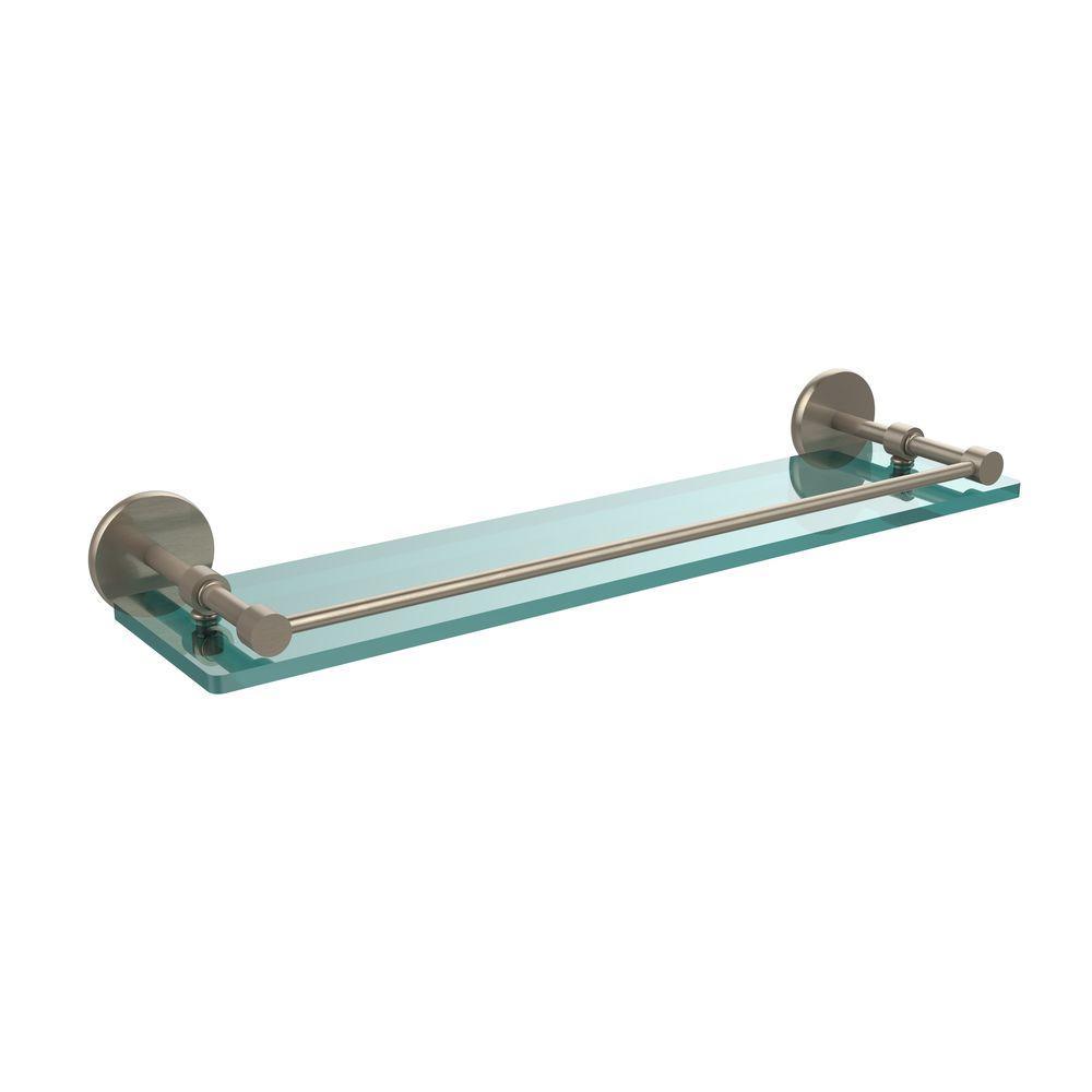 22 in. L x 3 in. H x 5 in. W Clear Glass Bathroom Shelf with Gallery Rail in Satin Nickel