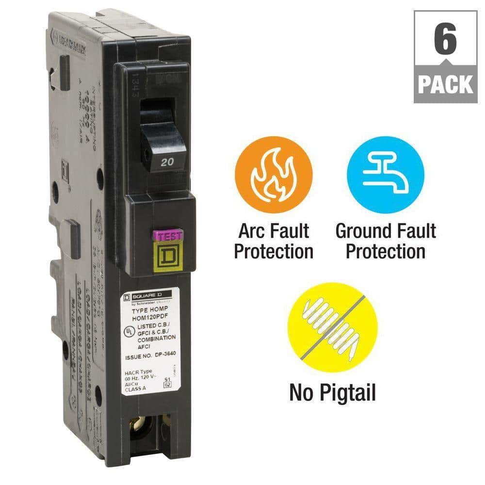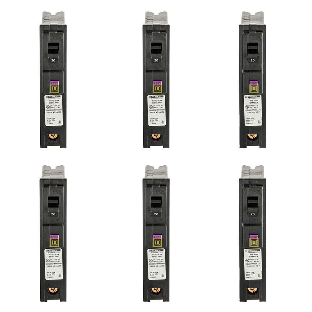 Homeline 20 Amp Single-Pole Plug-On Neutral Dual Function (CAFCI and GFCI) Circuit Breaker (6-Pack)