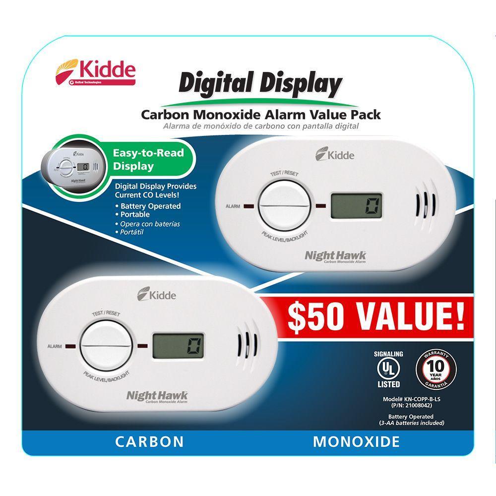 The Kidde Nighthawk battery operated carbon monoxide alarm is an easy to install unit that provides reliable protection against the dangers of carbon monoxide. Digital display feature adds an advanced level of protection showing CO levels in PPM allowing you to see if levels change. The Nighthawk DC Digital alarm has a small, sleek design that is suitable for all living areas and has a 10-year limited warranty.