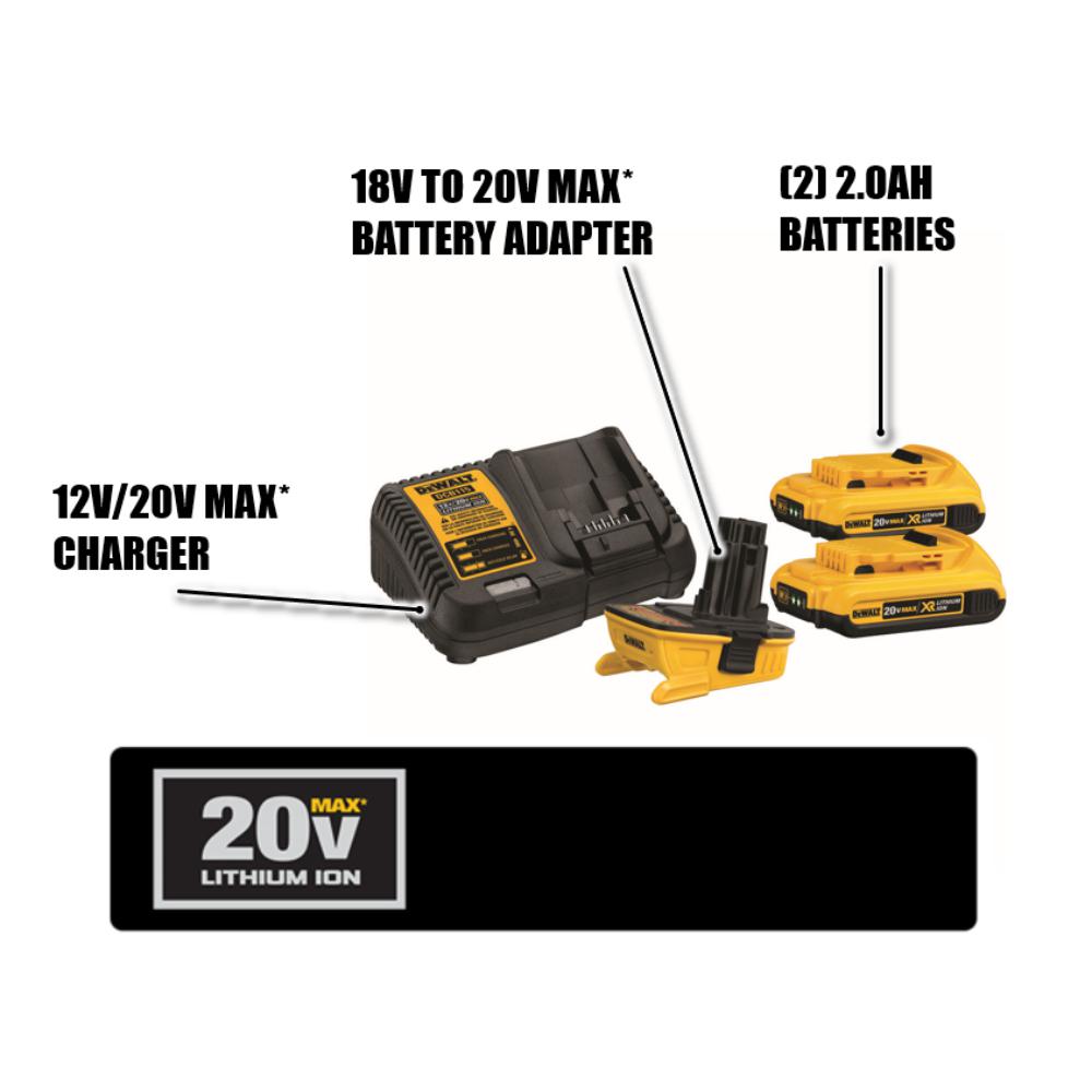 Allows for use of 20-Volt MAX lithium-ion batteries in most DEWALT 18-Volt lithium-ion tools
