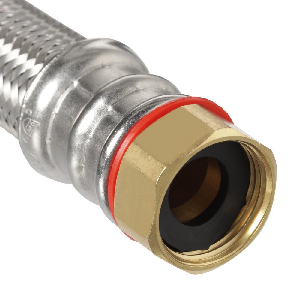 This 3/4 in. x 3/4 in. x 24 in. stainless steel braided supply line starts with an extruded core of PVC tubing. The core is then over-braided with polyester yarn and another layer of PVC material. The final layer consists of stainless steel braid to form a strong, yet flexible supply line.