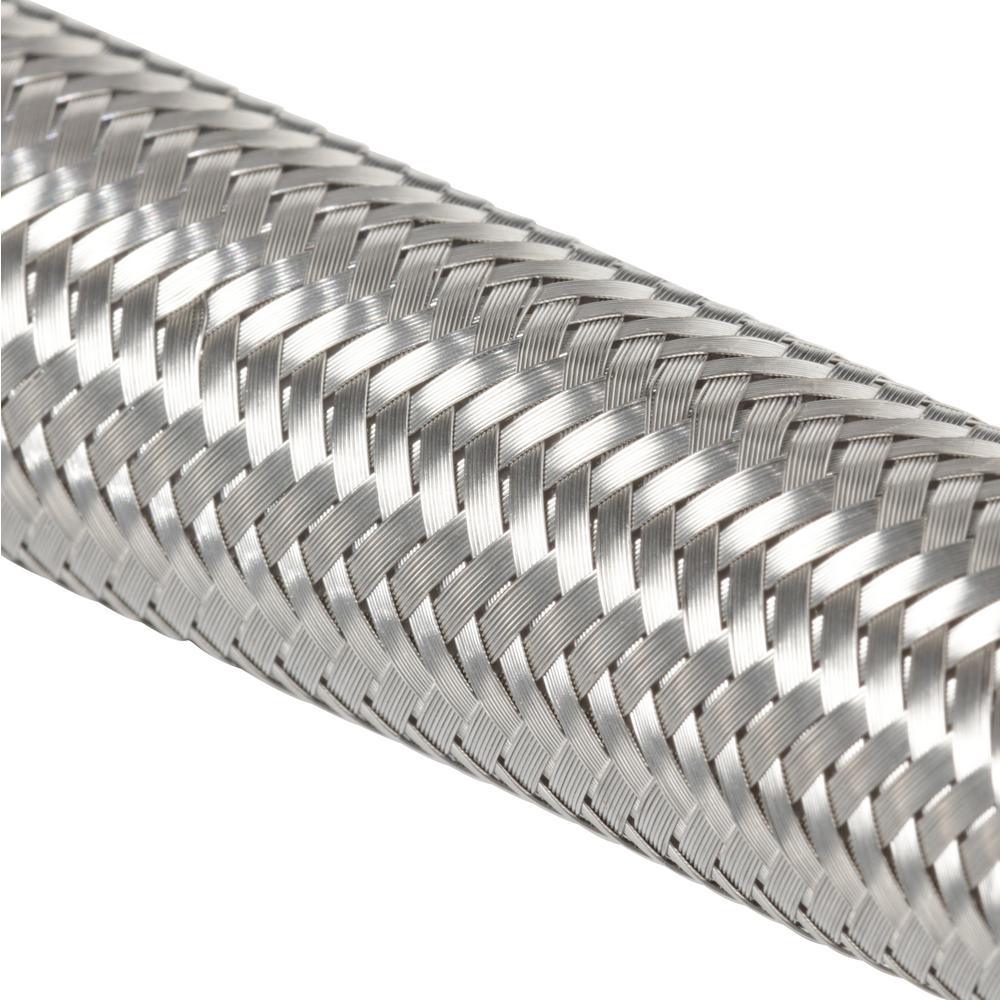 This 3/4 in. x 3/4 in. x 18 in. stainless steel braided supply line starts with an extruded core of PVC tubing. The core is then over-braided with polyester yarn and another layer of PVC material. The final layer consists of stainless steel braid to form a strong, yet flexible supply line.