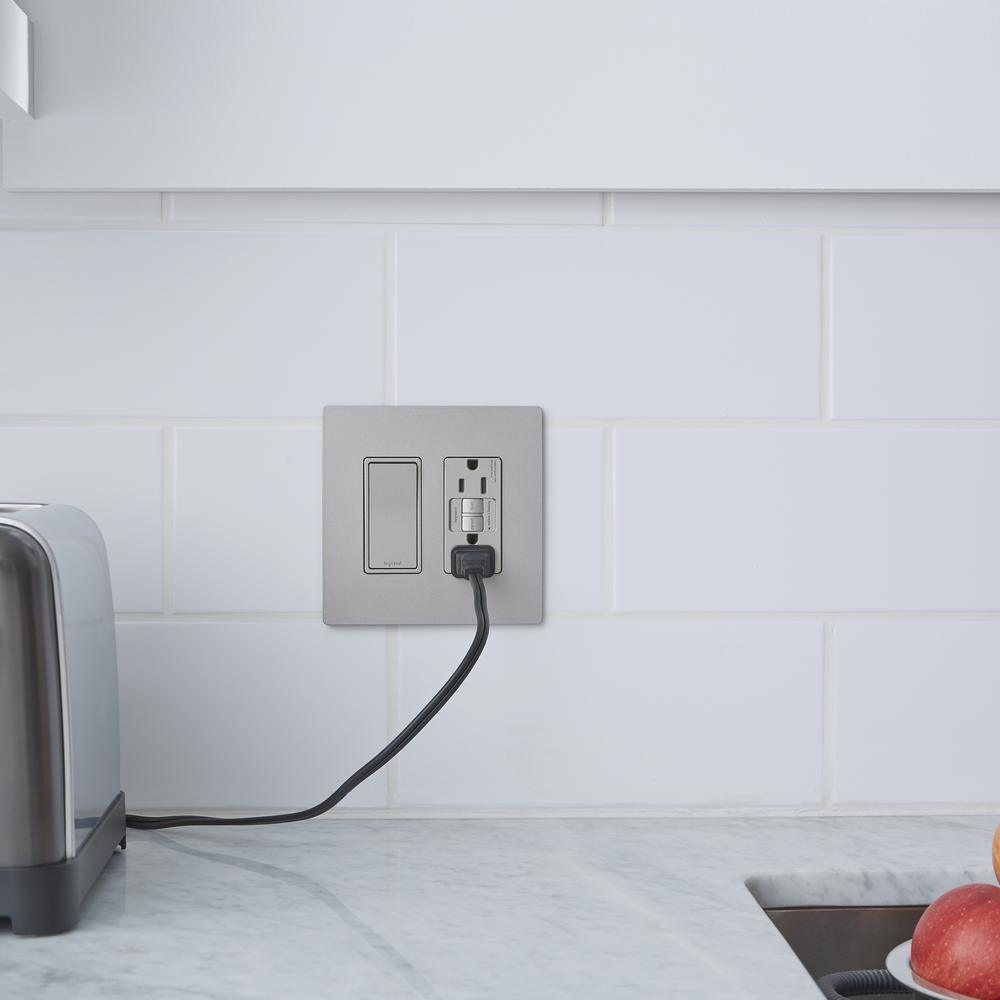The radiant collection is a step up from the standard with simple, classic options in wiring devices, home automation controls and screwless wall plates that complement today's homes. The self-test GFCI conducts an automatic test every 3-seconds, ensuring it's always ready to protect. If the device fails the test, the indicator light flashes to signal that the GFCI should be replaced. It also has our proven SafeLock Protection feature: if critical components are damaged and protection is lost, power to the receptacle is disconnected. This GFCI outlet also features tamper-resistant outlets, now with black invisi-shutters for an invisible effect preferred by end users. Designed to complement your decor, radiant layers on the style with tasteful finish options to coordinate with any decor.