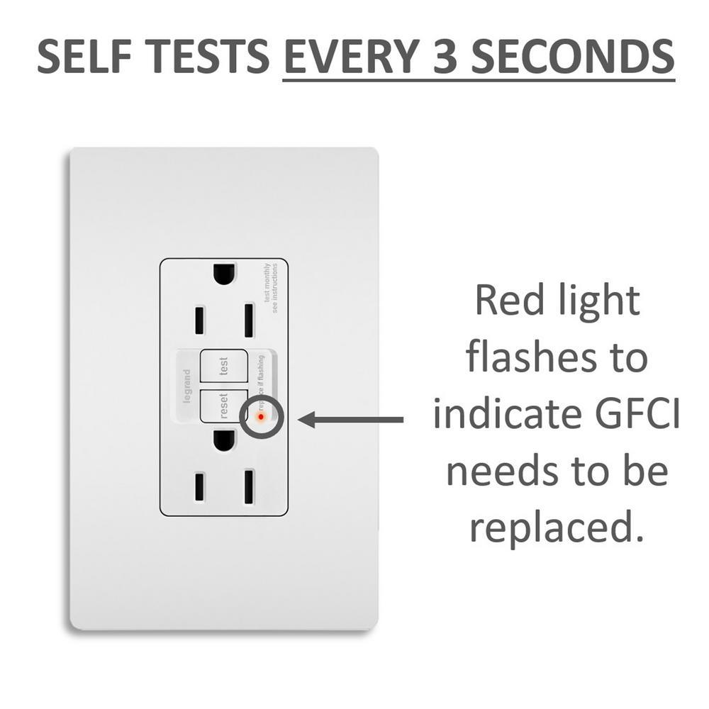 Conducts an automatic test every 3-seconds, ensuring it's always ready to protect - if the device fails the test, the trip indicator light (red LED) flashes to signal that the GFCI should be replaced