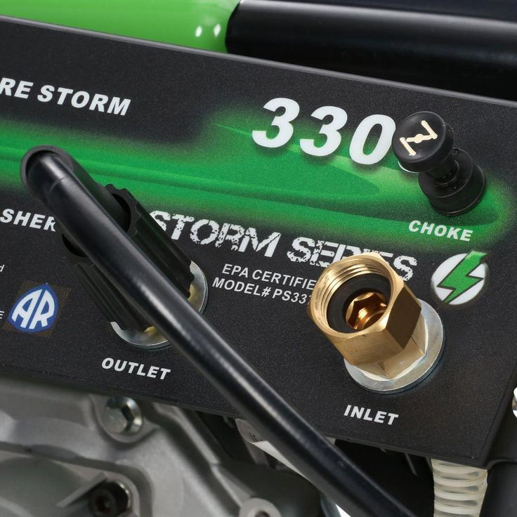 The Pressure Storm Series 3300 PSI 2.5 GPM Recoil Start Gas Pressure Washer comes with a 7 HP 212cc engine with a 1 gallon fuel capacity and low-oil shutdown for protection. This pressure washer produces 3300 PSI and 2.5 GPM of water with its premium anno reverberi RMV axial cam pump. It includes a 16 in. gun and lance and has a 25 ft. PVC high-pressure hose with included connectors. It also features a hose hanger and wand support on the frame for convenience. With the panel-mounted controls, everything is at your fingertips: engine switch, push/pull choke lever and both inlet and outlet water connections. This consumer duty pressure washer features a 1 in. heavy duty roll cage frame with extra wide, anti-vibration pneumatic tires measuring 10 in. x 3 in. for easy mobility. The handle locks in the upright position while in use and can fold down for easy storage. This design is great for all your cleaning needs including patios, decks, fences, house siding or your automobile or recreational vehicles. All parts to maintain and repair this pump are available.