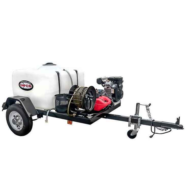 This Simpson self-contained pressure washer system is perfectly suited for Contract Cleaners, Mobile Detailers, Municipalities and Resorts. The trailer is DOT Certified as an over-the-road pressure washing system. Job-site set-up is a snap. Pull up to the work area, connect the spray gun, start the engine and begin cleaning.