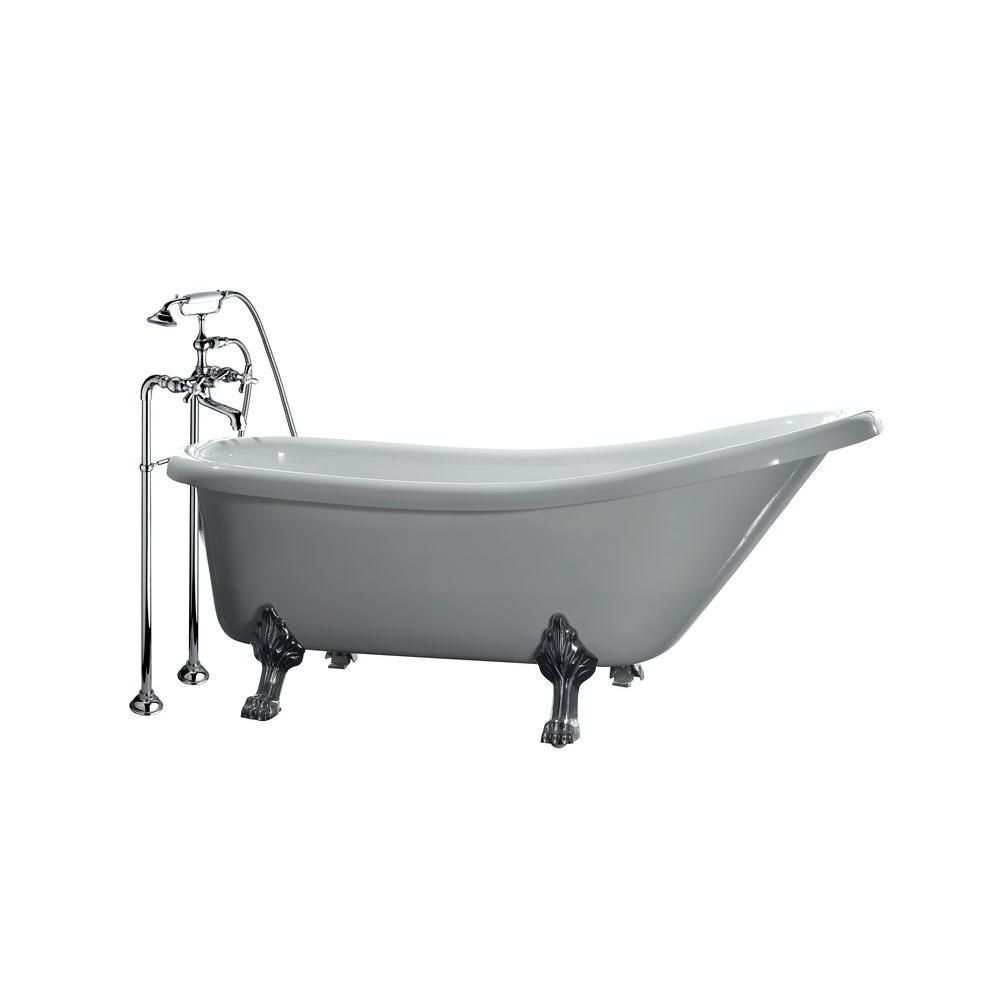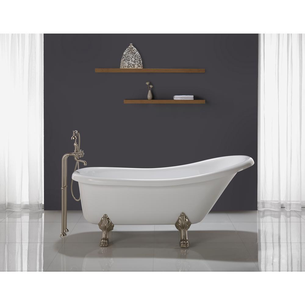 This 5.5 ft. All-in-One Acrylic White Clawfoot Tub easily adds a classic beauty to your bathroom decor without breaking the bank. Each tub includes satin nickel lion feet and a detailed freestanding faucet.
