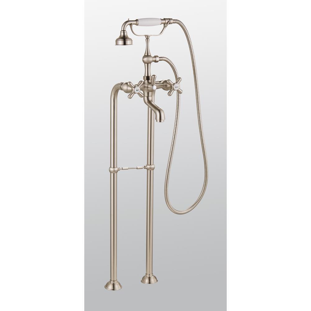 Clawfoot acrylic bathtub with freestanding satin nickel faucet, hand shower and feet included