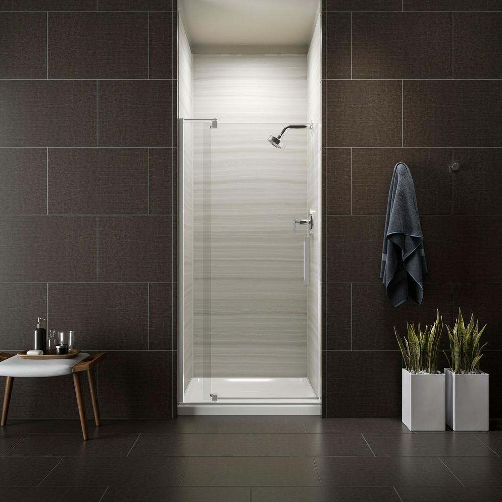 The Revel shower door creates an open, airy look with its minimalist frameless design and ultra-low threshold. Designed for easy personalization, the Revel series is available in a full range of KOHLER finishes and height and glass options, so you can choose the ideal door for your space. This adjustable-width door allows for simpler installation.