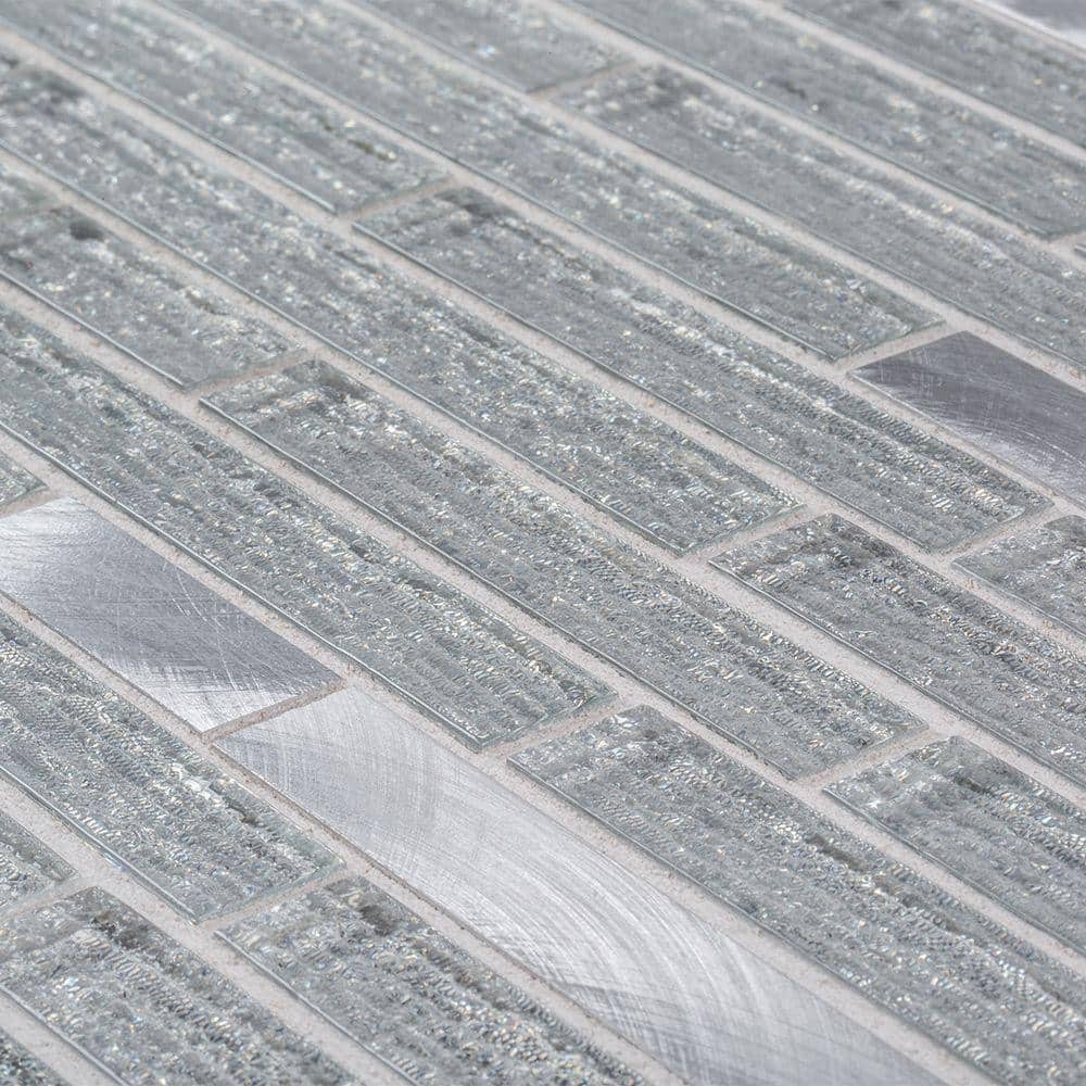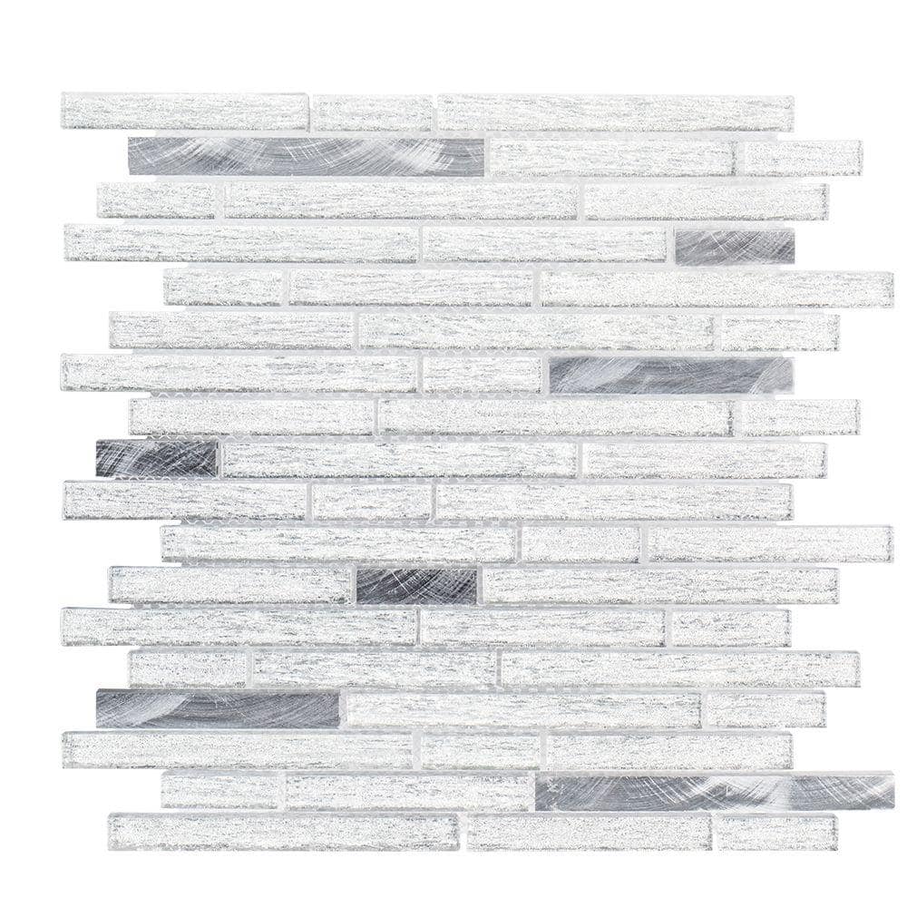 Jeffrey Court Ice Pencil 11.5 in. x 11.875 in. x 8 mm Interlocking Textured Glossy Glass/Metal Mosaic Tile
