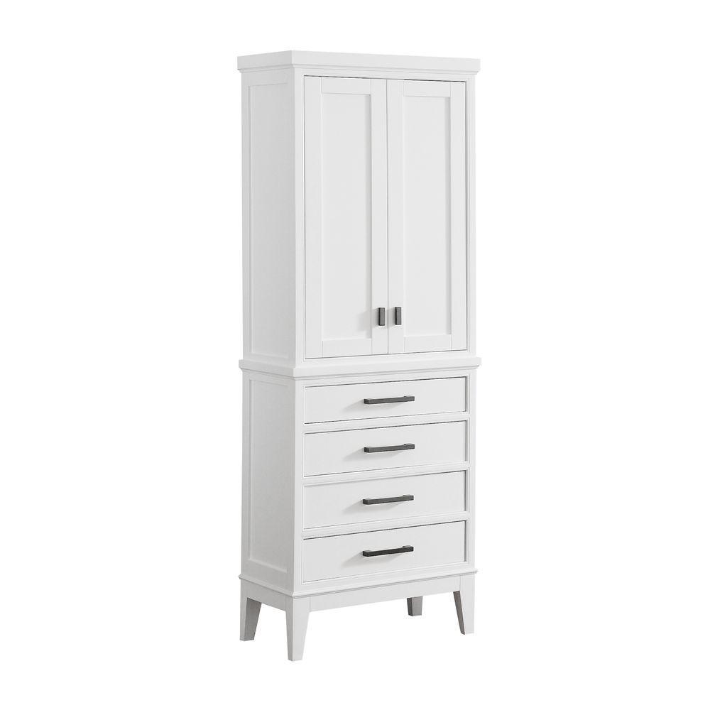 The Madison 24 in. linen tower combines function with style. The linen tower is designed with strong attractive lines and finish in White with old bronze hardware. It is constructed of Solid poplar wood and veneer and veneer with soft-close door hinges and drawer glides. It features multiple shelves and drawers to accommodate all your storage needs.