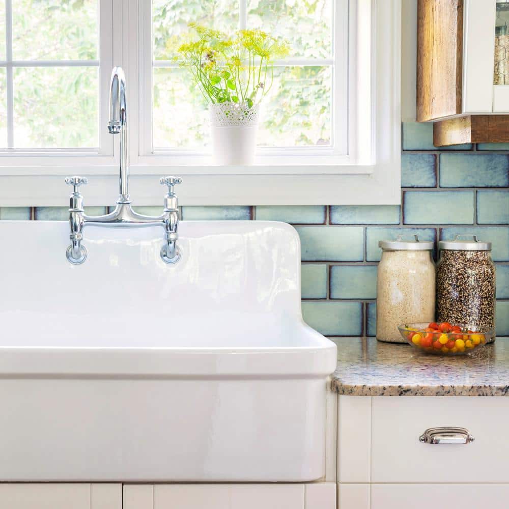 Bring vintage character to backsplashes and feature walls with Merola Tile’s Antic Special Agua Marina 3x6 ceramic subway tiles. A glossy reactive glaze delivers oceanic blue tones with handcrafted edges for artisanal depth, ideal for kitchens, baths, and showers. Sold by the case for coordinated, indoor wall applications.
