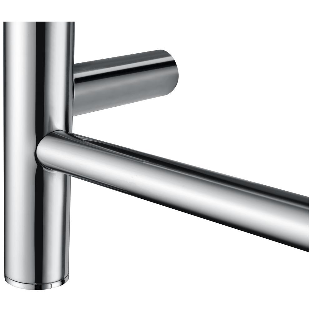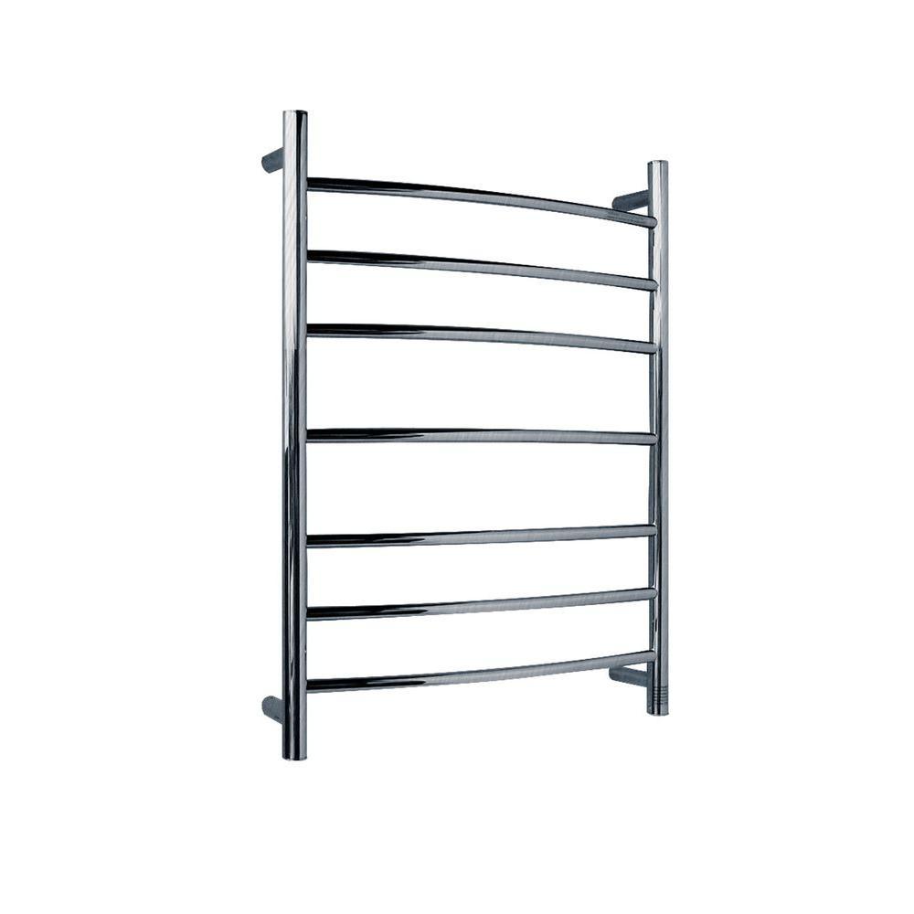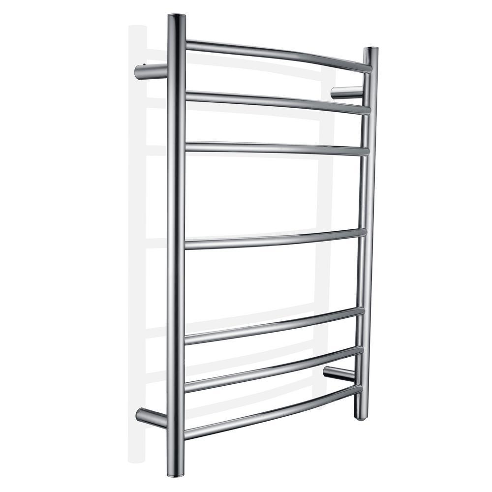This gleaming chrome towel warmer lends a subtle architectural curve that instantly elevates a bath into a serene retreat. The seven streamlined bars create a rhythm of light and shadow—functional sculpture for your walls. Style it beside a soaking tub with plush neutral towels to let the polished finish shimmer. Consider it a small indulgence that delivers daily luxury.