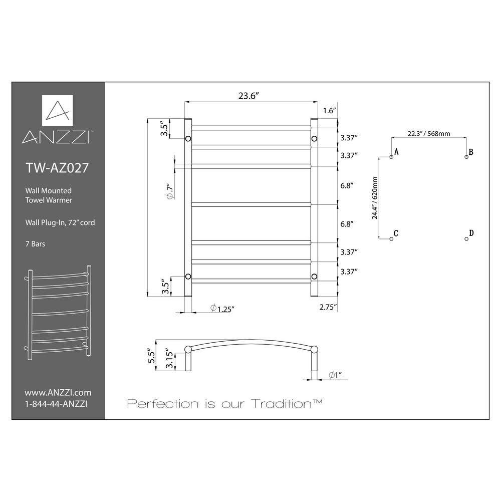 ANZZI Gown 7-Bar Electric Towel Warmer in Polished Chrome, 31.5 x 23.6 in