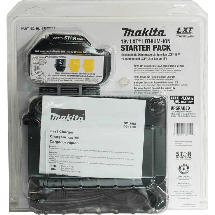 Build your own tool kit with the 18-Volt Compact Lithium-ion Battery and Charger Starter Pack. Makita offers over 100 cordless tools and most are available both in kits (with batteries and charger) and as bare tools (tool-only, no batteries or charger included). Pick up the Makita Starter Pack and then select the bare tools you need to get the job done. It's an ideal way to start building a Makita cordless tool line-up. Makita 18-Volt Lithium-ion batteries resist self-discharge so they’re ready for use even after long periods of storage. The Makita Rapid Optimum Charger is a smart-charging system that communicates with the battery during the charging process to monitor current, voltage and temperature. This advanced charging technology helps optimize battery life and deliver a faster charge. In addition, the Charger has a built-in fan to cool the battery for faster and more efficient charging, even in hot weather conditions. For improved tool performance and extended battery life, Makita created Star Protection Computer Controls. Star Protection is communication technology that allows the tool and battery to exchange data in real time and monitor conditions during use to protect against overloading, over-discharging and overheating. Makita, the innovation leader in cordless tool technology, has the world’s largest cordless tool line-up powered by 18-Volt lithium-ion slide-style batteries.