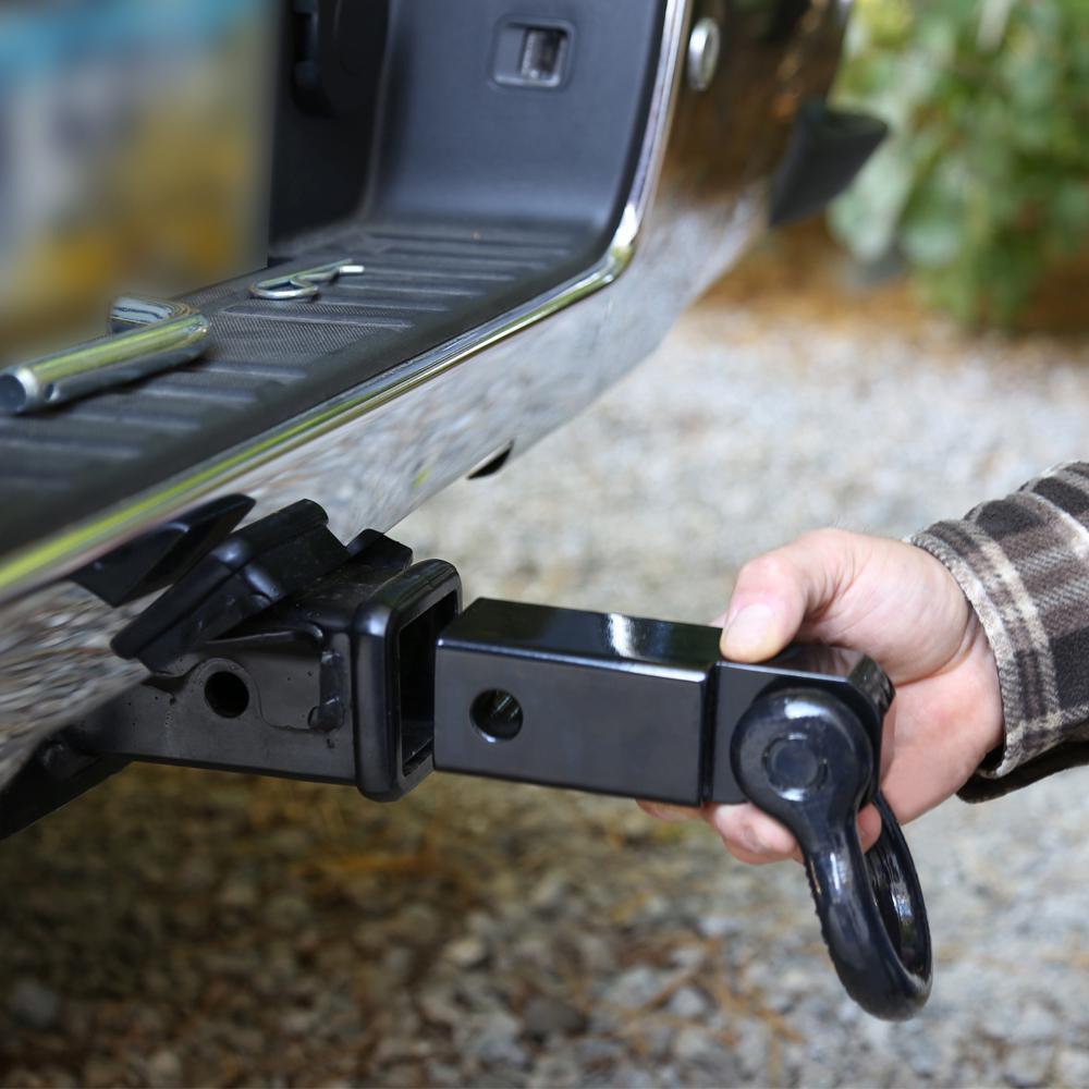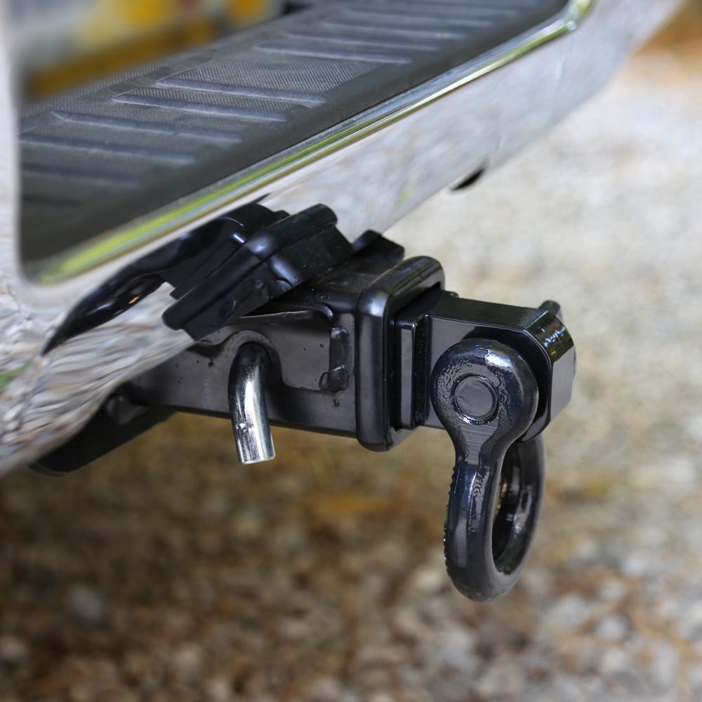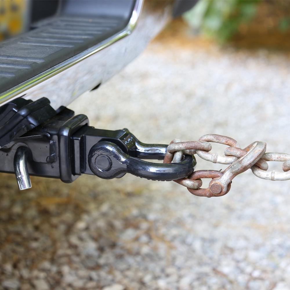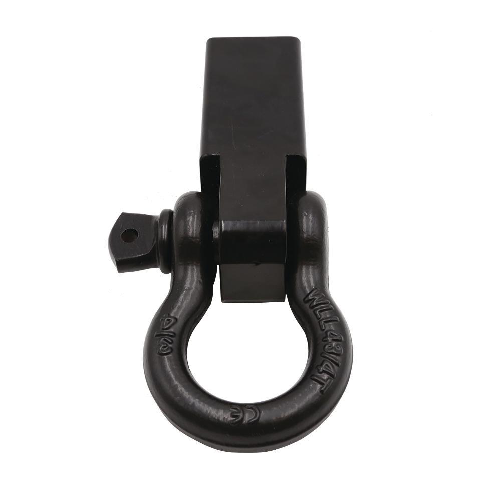 The TowSmart Mount Tow Ring is a great product for multiple applications. It is built of a durable steel construction with a black powder-coat finish that is corrosion-resistant. It is a rugged 7-1/2 in. steel mount with shackle that will fit into a 2 in. receiver hitch for added strength.