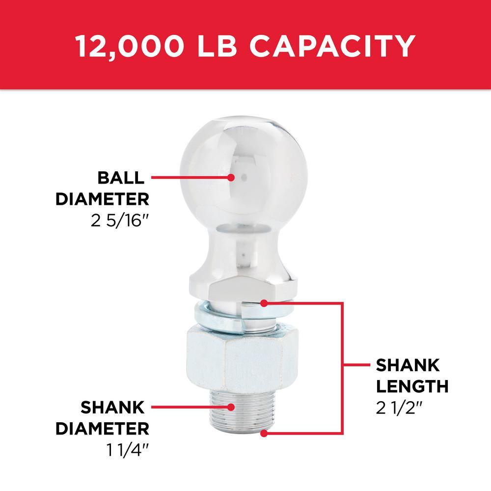 The TowSmart Hitch Ball is a key component to create a secure connection between your vehicle and trailer when towing your valuable assets. The heavy-duty construction is extremely durable with a chrome plated finish that is corrosion resistant. The hitch ball provides wrench flats for easy positioning in the X-Mount lockrail system. The lockrail functions as a built-in wrench preventing hitch ball rotation during installation or removal. The wrench flat design is universal to be used with any standard ball mount. It is important to know the total weight of the trailer (GTW) you are towing and the maximum towing capacity determined by the vehicle manufacturer.