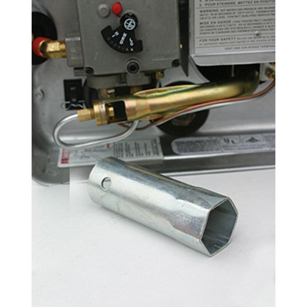 Remove and replace residential screw-in water heater elements quickly and easily with Camco's Water Heater Element Wrench. This 5 in. long zinc-plated wrench goes where other wrenches can't. It works with your screwdriver and fits 1-1/2 in. hex screw-in type water heater elements found on residential hot water heaters.