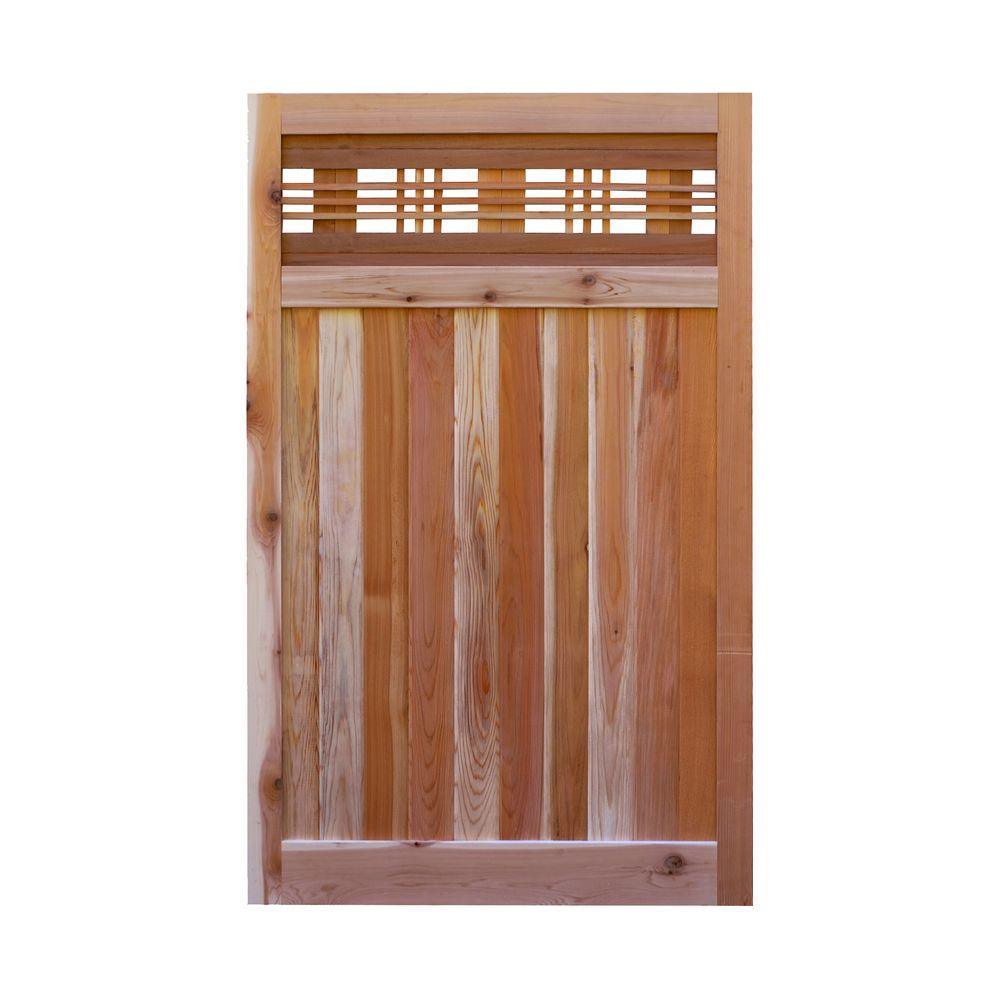 Experience the aroma and long lasting beauty of a Western red cedar fence gate. Cedar gives a feeling of warmth and compliments the natural surroundings, while adding charm to your outdoor living space. Well known for its natural oils, western red cedar resists decay and withstands harsh environments. Constructed with the highest quality, hand selected Western red cedar featuring a flat top horizontal lattice design. Its structure is stable, durable and ready to withstand the elements for years of quality performance. This gate is manufactured using corrosion-resistant fasteners and features tongue-and-groove milled fence boards to help provide privacy. Easy to install and used for many applications residential or commercial. Hinges can be installed on the right or left side. Cedar fence gates are the perfect addition to your fence or arbor project.