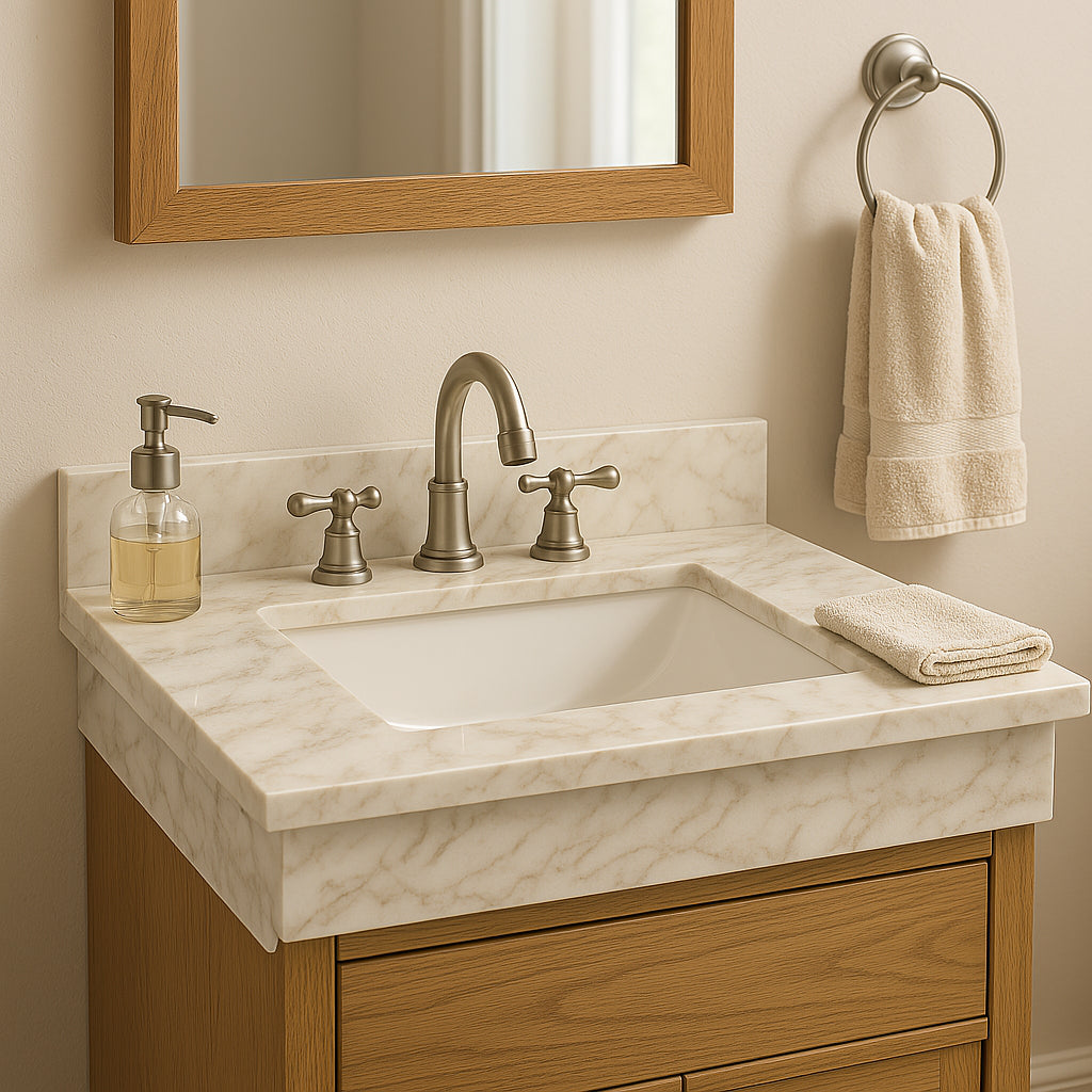 Elevate your bathroom's style and functionality with this luxurious marble vanity top—order now to transform your space.