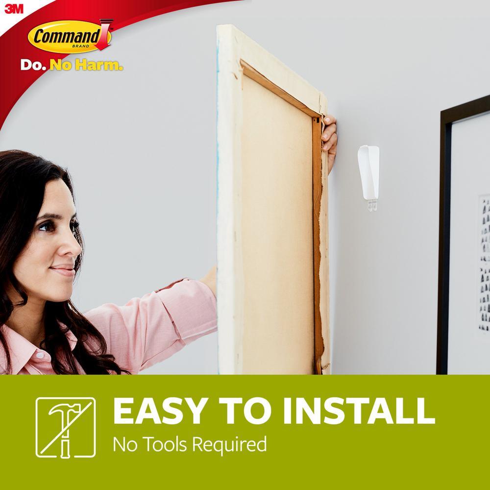 Command Canvas Picture Hangers make hanging your canvas prints, paintings and decorations quick and easy. Once the Canvas Hanger is applied to your wall, simply place your canvas picture on the canvas hanger and you are done. The small sawtooth ridge on the canvas hanger grips into the canvas frame, or stretcher bar, providing extra grip and security. Best of all, when you are ready to take down or move your canvas pictures, they come off cleanly - no nail holes or sticky residue. Command Canvas Picture Hangers are available in size large which holds most canvas pictures up to 18 in. x 24 in. and 3 lbs. and size jumbo which hold most canvas pictures up to 24 in. x 36 in. and 5 lbs.
