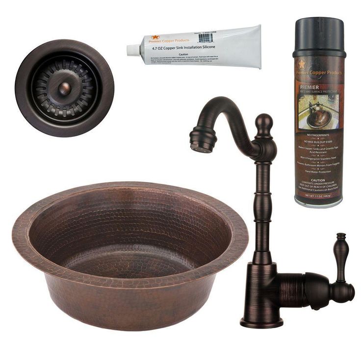 All-in-One Dual Mount Copper 14 in. Round Bar Sink with Faucet and 3.5 in. Strainer Drain in Oil Rubbed Bronze