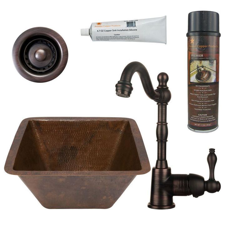 All-in-One Dual Mount Copper 15 in. Square Bar/Prep Sink with Faucet and 2 in. Strainer Drain in Oil Rubbed Bronze