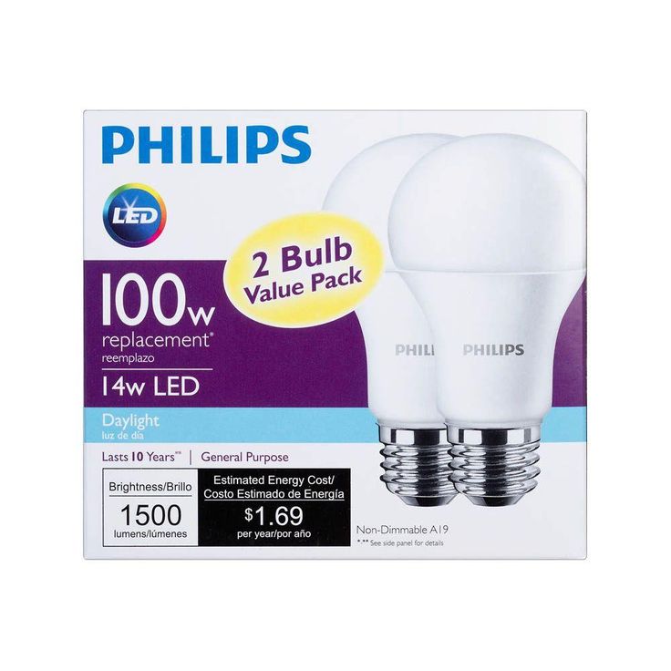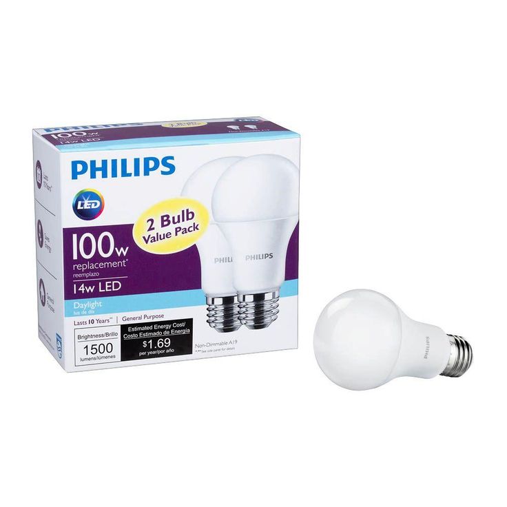 This Philips 14-Watt LED A19 household light bulb is the perfect replacement for anywhere traditional light bulbs are used, such as table or floor lamps. This 14-Watt 5,000K LED A19 provides a light similar to natural daylight, perfect for your living room, bedroom, kitchen or any place in your home where you would use a standard incandescent light bulb. The Philips LED A19 household light bulb provides 360 Degree all around light and can replace your current 60-Watt light bulb. Philips LED A-shape light bulbs are a smart alternative to standard incandescent and designed to deliver everyday value and effective, consistent light.